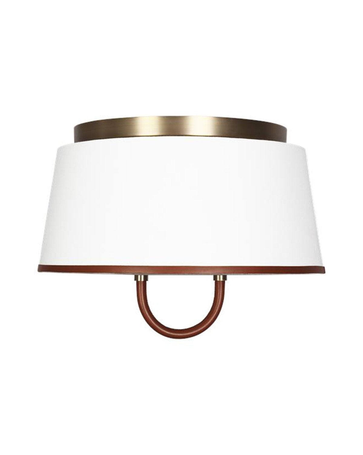 With a modern feel, the Danica Flush Mount puts mixed materials on display with its updated take on a classic silhouette. Featuring a base finished in either a time worn brass or polished nickel, leather details in either a rich cognac or solid black accent the unique shape, adding both the perfect amount of light and style to your space.