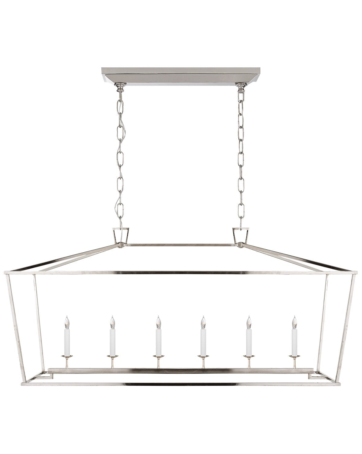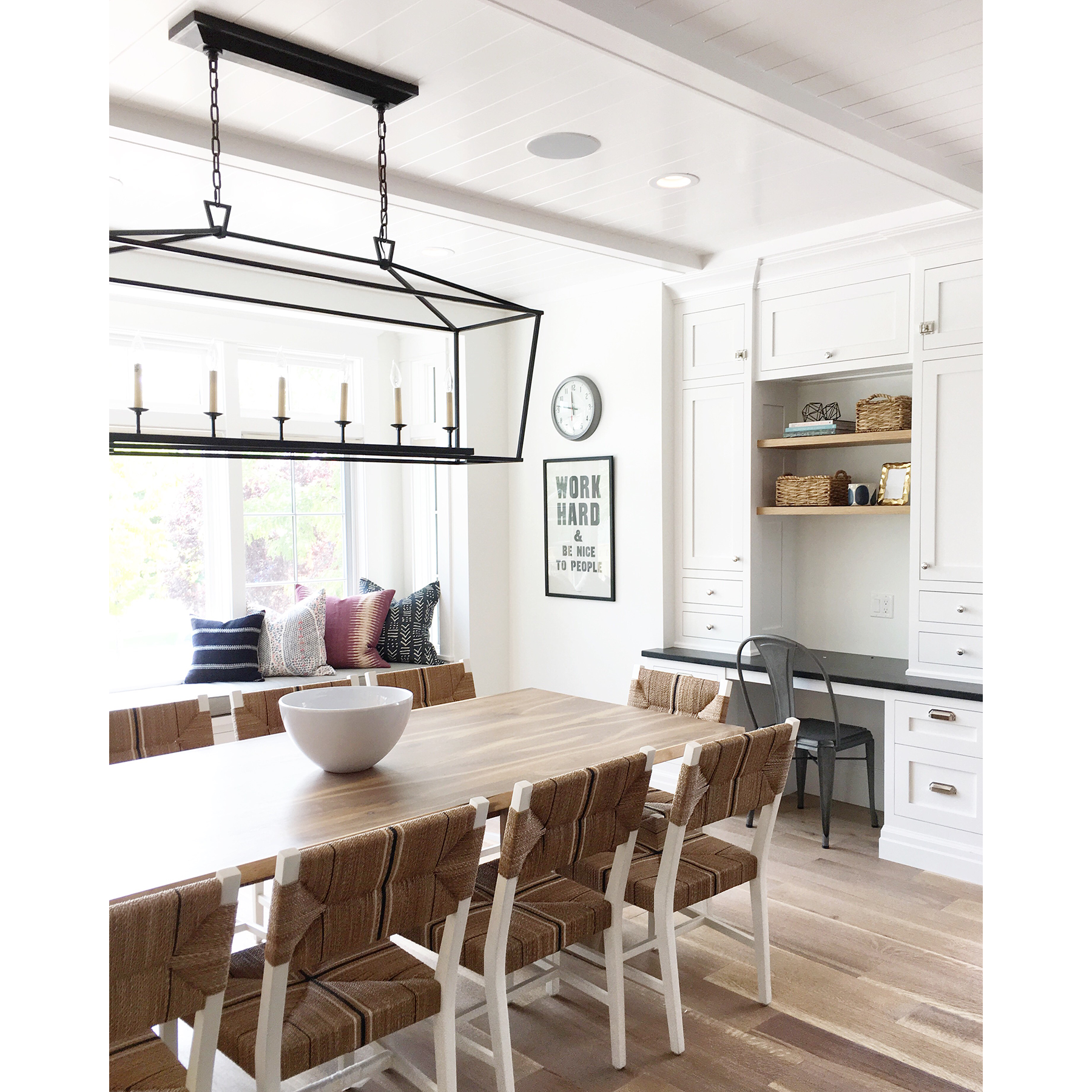 Make a statement with our Darlana Linear Lantern. Featuring a wrought iron frame encasing a classic candelabra, this suspension light adds an upscale feel to existing traditional design. Update your lighting with one of this pendant's four unique finish options.