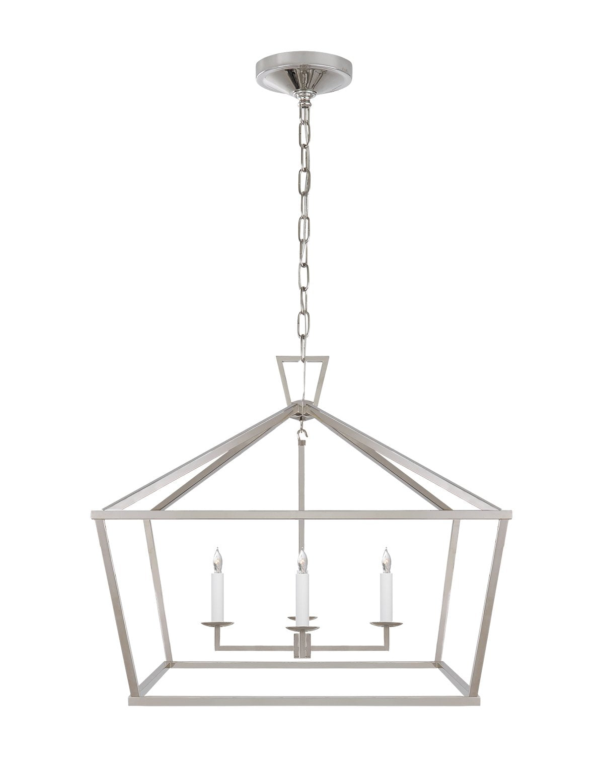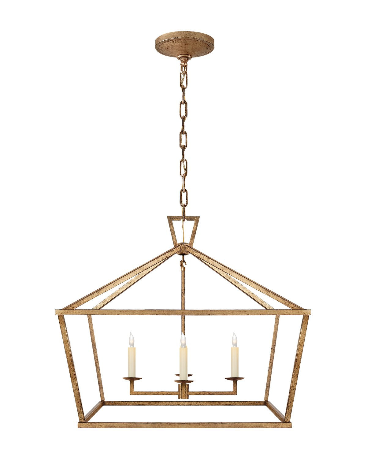 The Darlana Wide Lantern’s oversized open-air design gives form to a space with its thick metal frame, available in three versatile finish options. Hang in an entry or over the dining room table to balance both traditional and modern elements in a room.