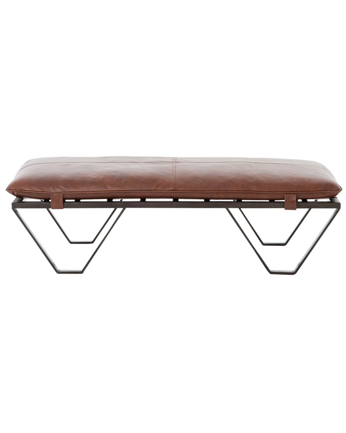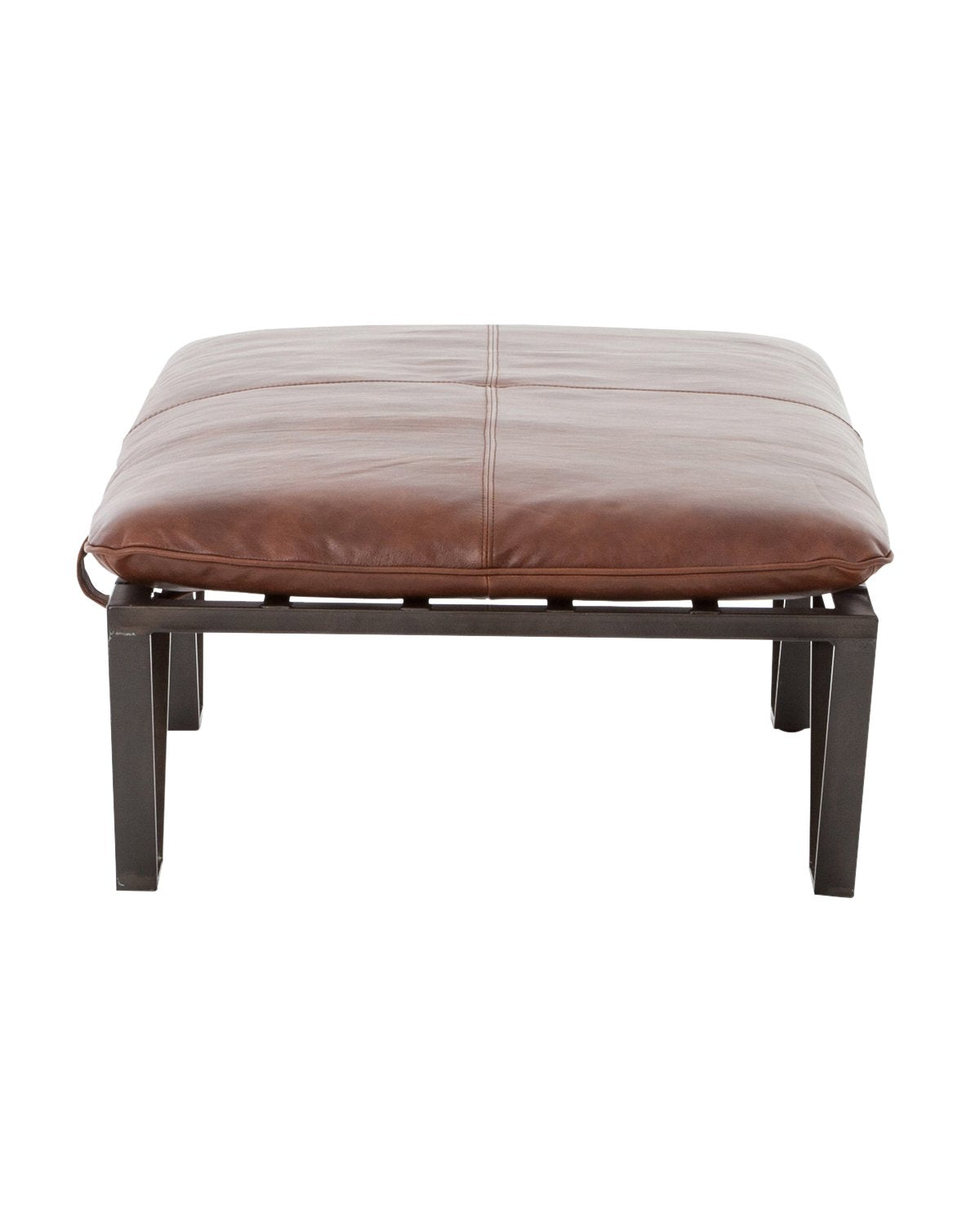 Sophisticated style meets contemporary design in the geometric rebirth of this classic ottoman. Our Drew Leather Ottoman features a solid flatstock iron base, fitted with an aged, top-grain leather cushion for luxurious comfort and refined appeal.