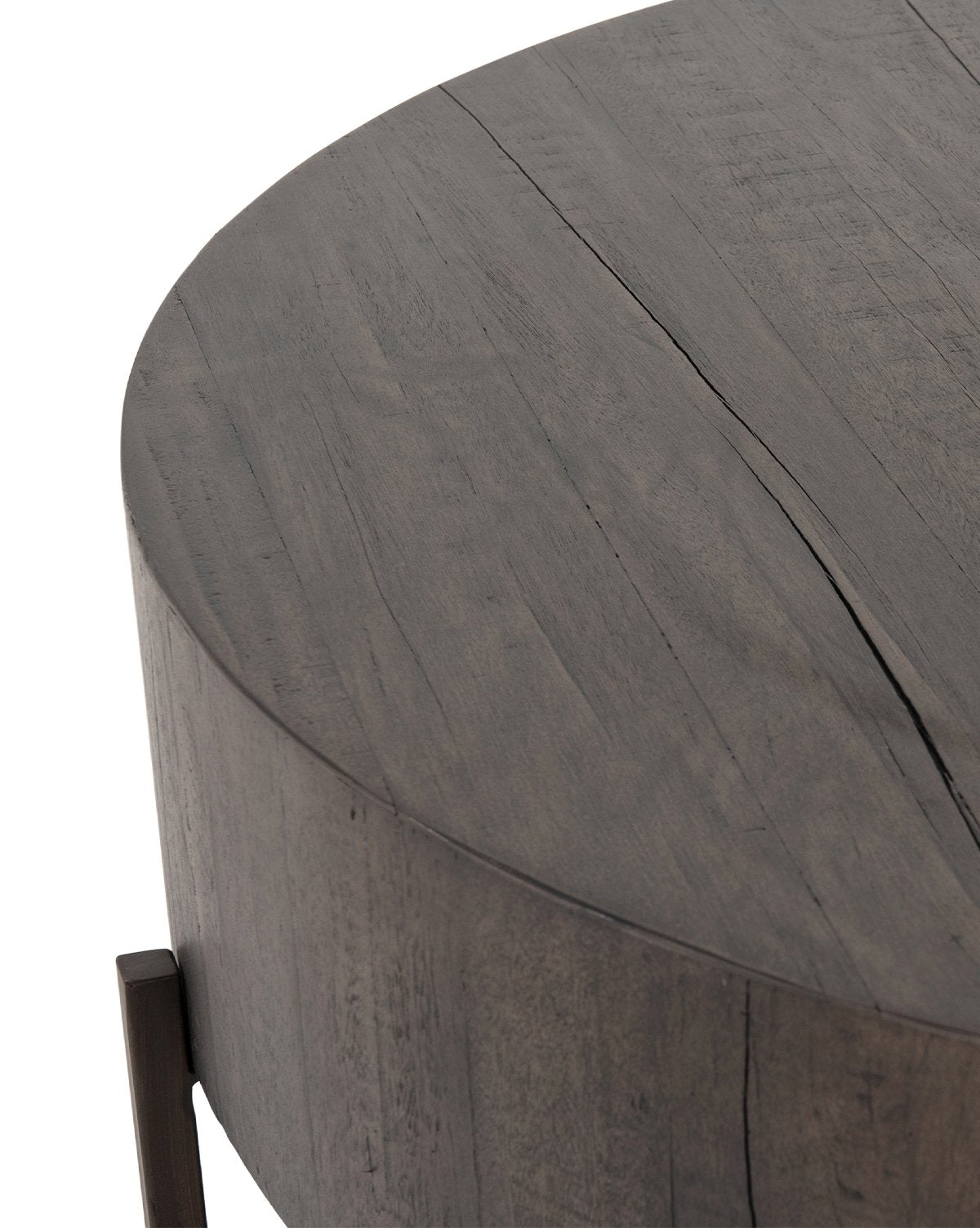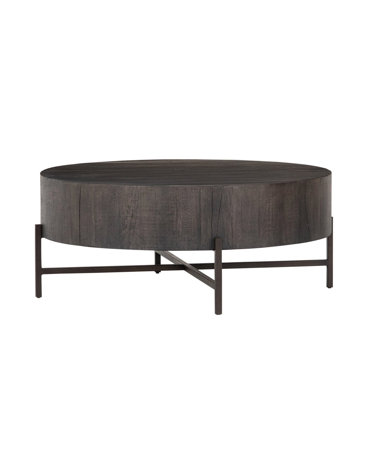 Make a contemporary statement with the Eva Coffee Table.  Its slim iron legs bring an open-air feel and balance to its drum top made of solid Australian hardwood. Both a subtle copper tone on the legs and a distressed finish on the top lend rustic character and reveal close attention to detail.