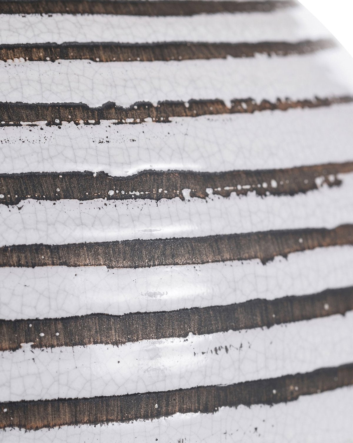 The universal shape of the Galveston Lamp is brought to life with artistically drawn stripes.  Its monotone palette is modern and versatile while its textured pattern brings a natural element to its design.