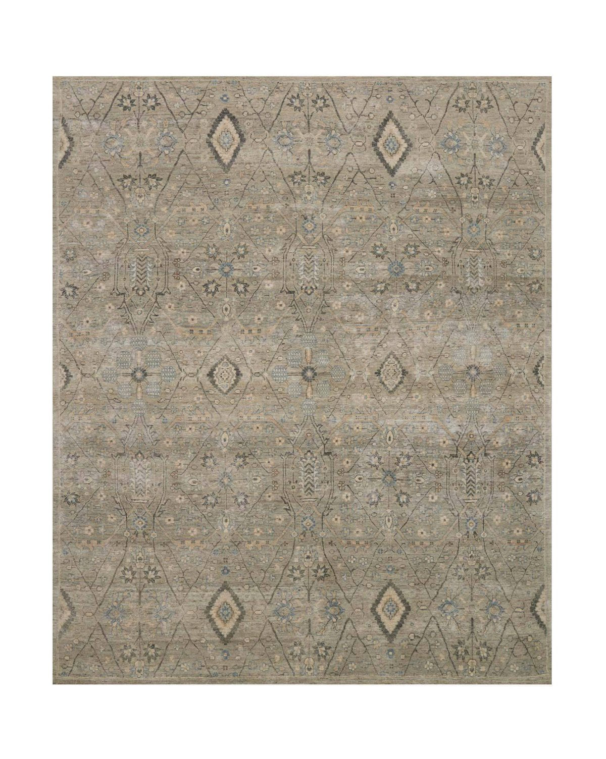 Hand-knotted by skilled artisans in India, our Haarlem Rug is crafted from 100% Wool. Deliberately distressed for a vintage look and feel, its neutral coloring anchors your space with an understated, elegant motif.