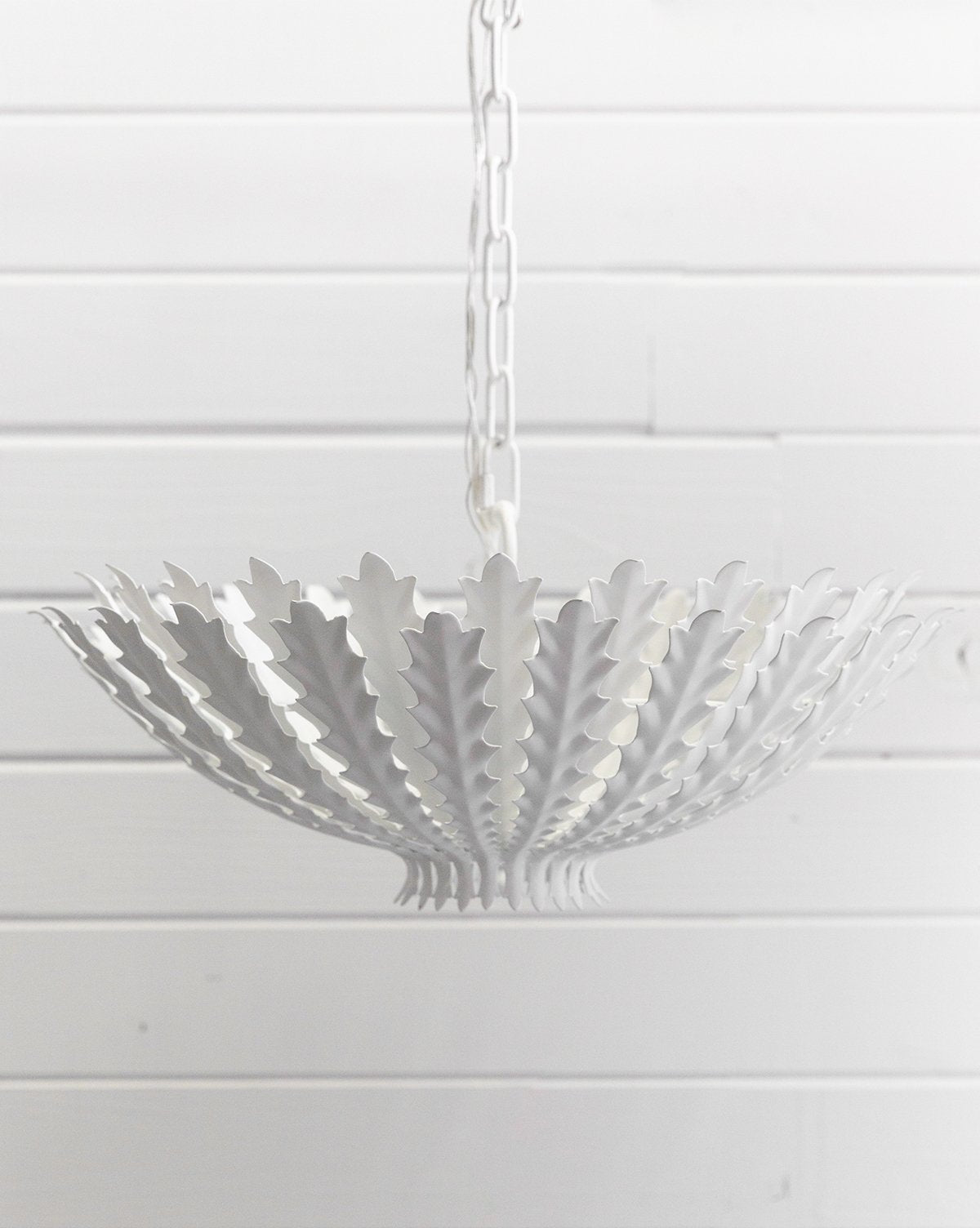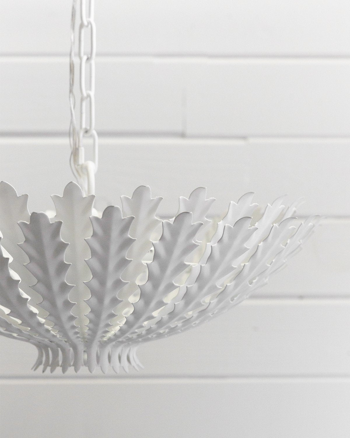 With organic motifs and vintage detailing, the Hampton Chandelier looks as if found at an antique shop. Available in a wide range of metal finishes, all are eye-catching whether used as sweet or statement ceiling lighting.