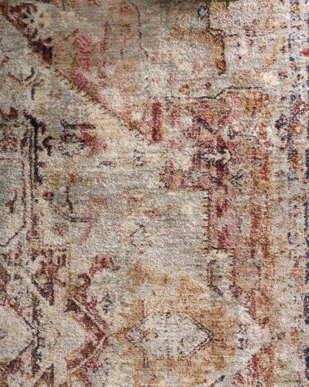DESIGNER TIP- This rug has a sheen and may change colors in the light. There is a hint of blue that can sometimes make the rug look more cool than warm (see styled image).
