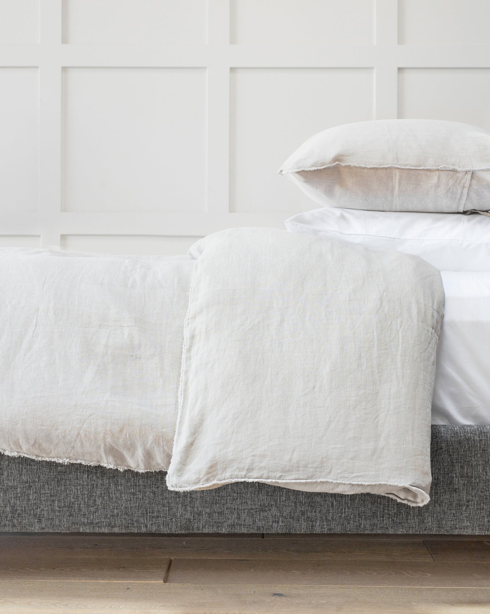 The Hudson collection is all about natural and relaxed style–– just what you’d want for your bed! A 100% linen weave ensures a soft base with the subtly imperfect and textured look, characteristic of the weave. Three neutral color options, complete with subtly frayed edges, make it a natural fit for any bedroom.