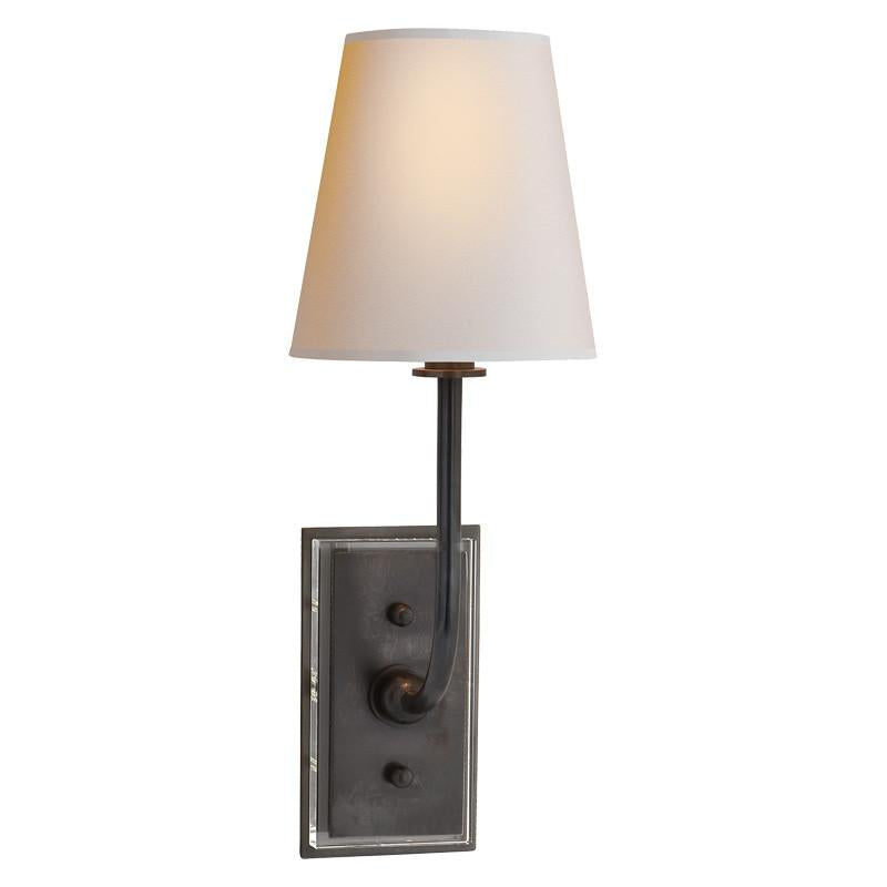This single sconce is very unique with its sandwiched acrylic rectangular backplate. It’s the perfect combination of masculine and feminine.