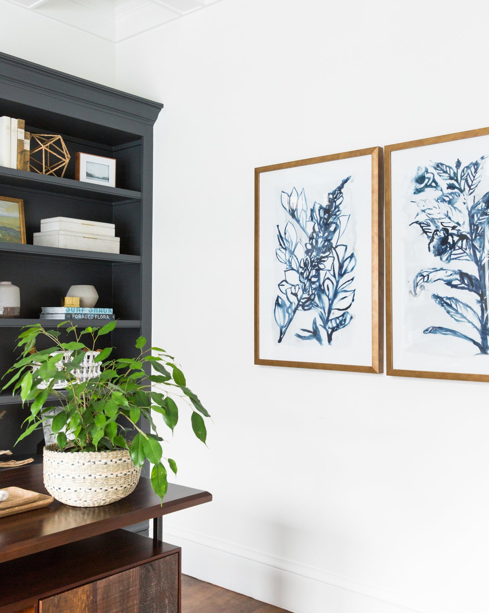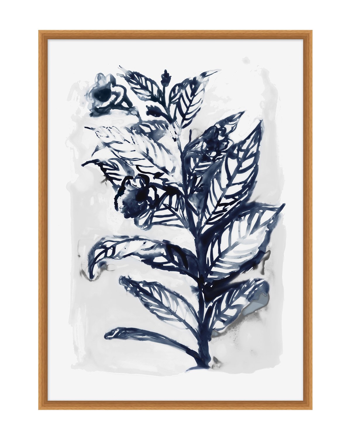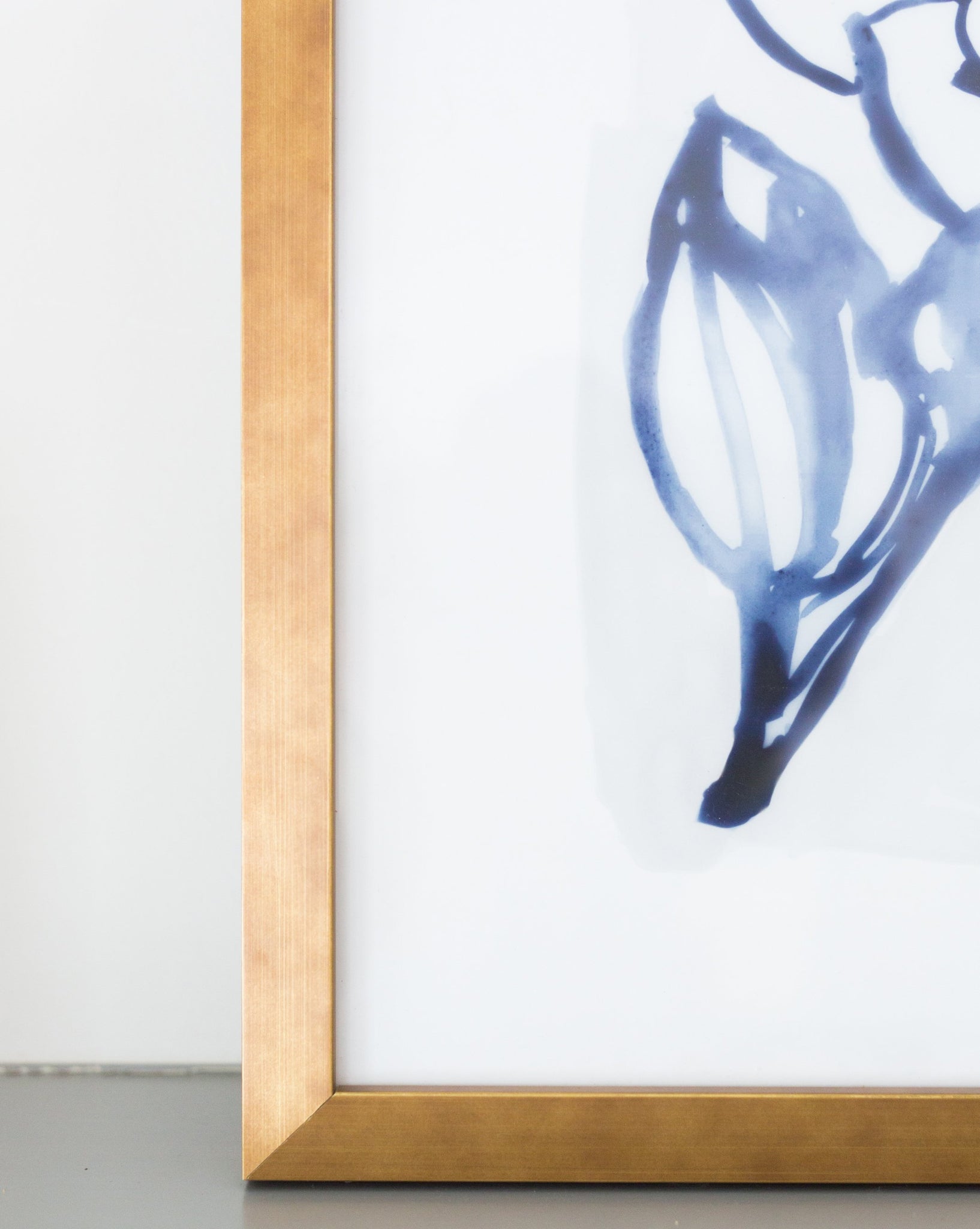 The imperfection in watercolor brings character and depth to the Indigo Botanical collection. Created in a rich indigo, these expressive branches create great contrast against a brushed gray background and accented brass frame. Make a statement with both prints whether hung alone or side-by-side.