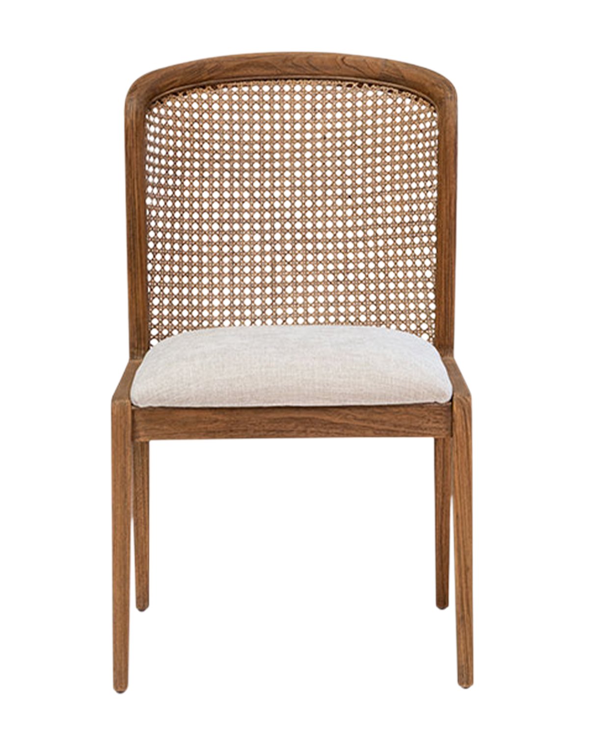 Hand made in Indonesia from time-honored techniques, the Irma Chair lends timeless elegance to your dining room table. Inspired by 40s-era Swedish furniture, this chair features a sturdy teak frame and intricate cane backing. A creamy crypton fabric covers the cushion to keep this delicate design functional and comfortable.