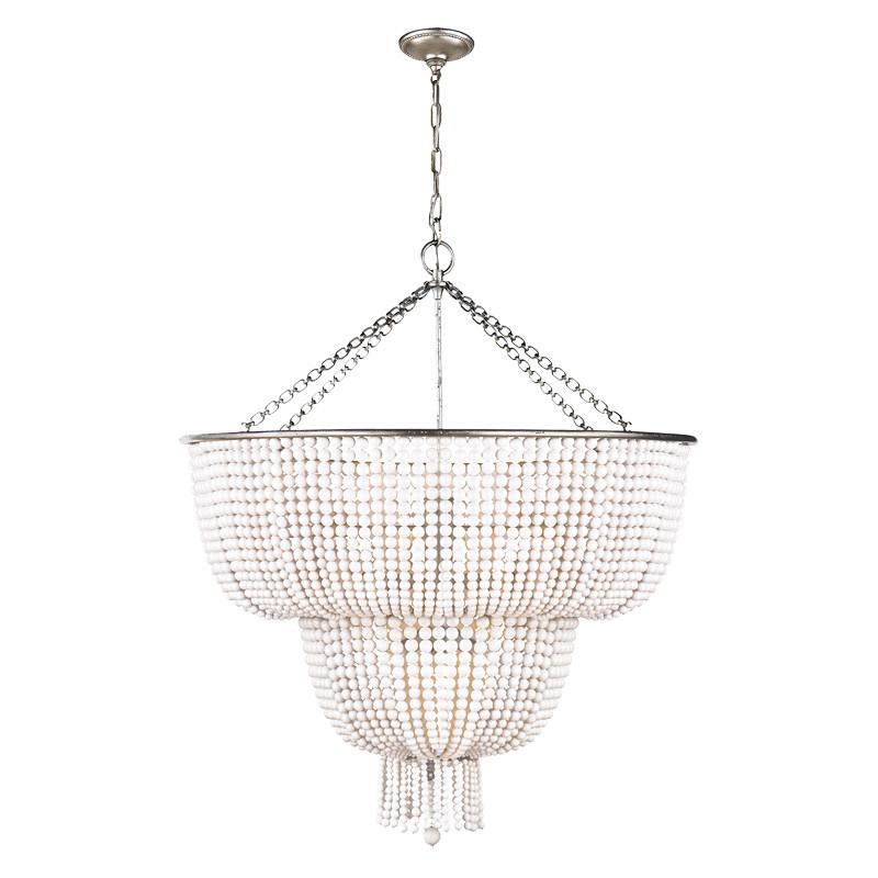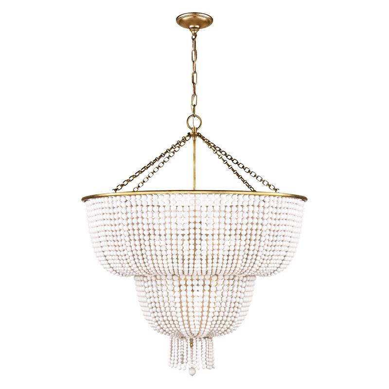 This chandelier hangs beautifully with its white acrylic tiered beads. It is the icing on the cake to a formal, feminine look!
