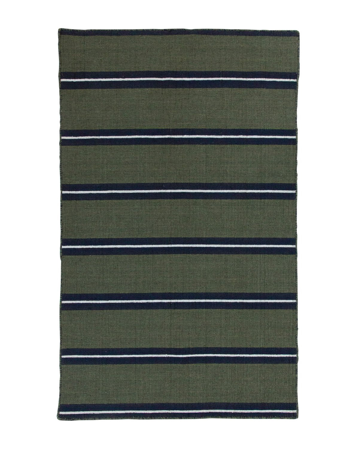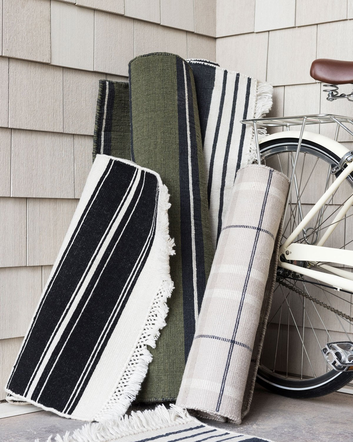 Our Jamestown rug is handwoven in India from recycled materials by skilled artisans. While crafted to withstand the outdoor elements, its cotton feel and look makes it comfortable and pretty enough for indoor spaces too! We designed its deep green stripes to beautifully layer with a doormat or set the tone with outdoor furniture on top.