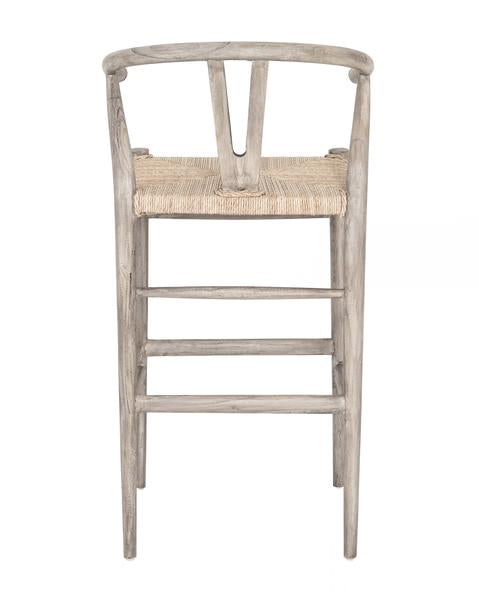 With a wishbone style back and modern curves, the teak-framed Jasper Bar Stool makes a statement wherever it’s placed. Horizontal bars bring visual dimension to its base, as a woven wicker seat adds refined texture, finishing off the design.