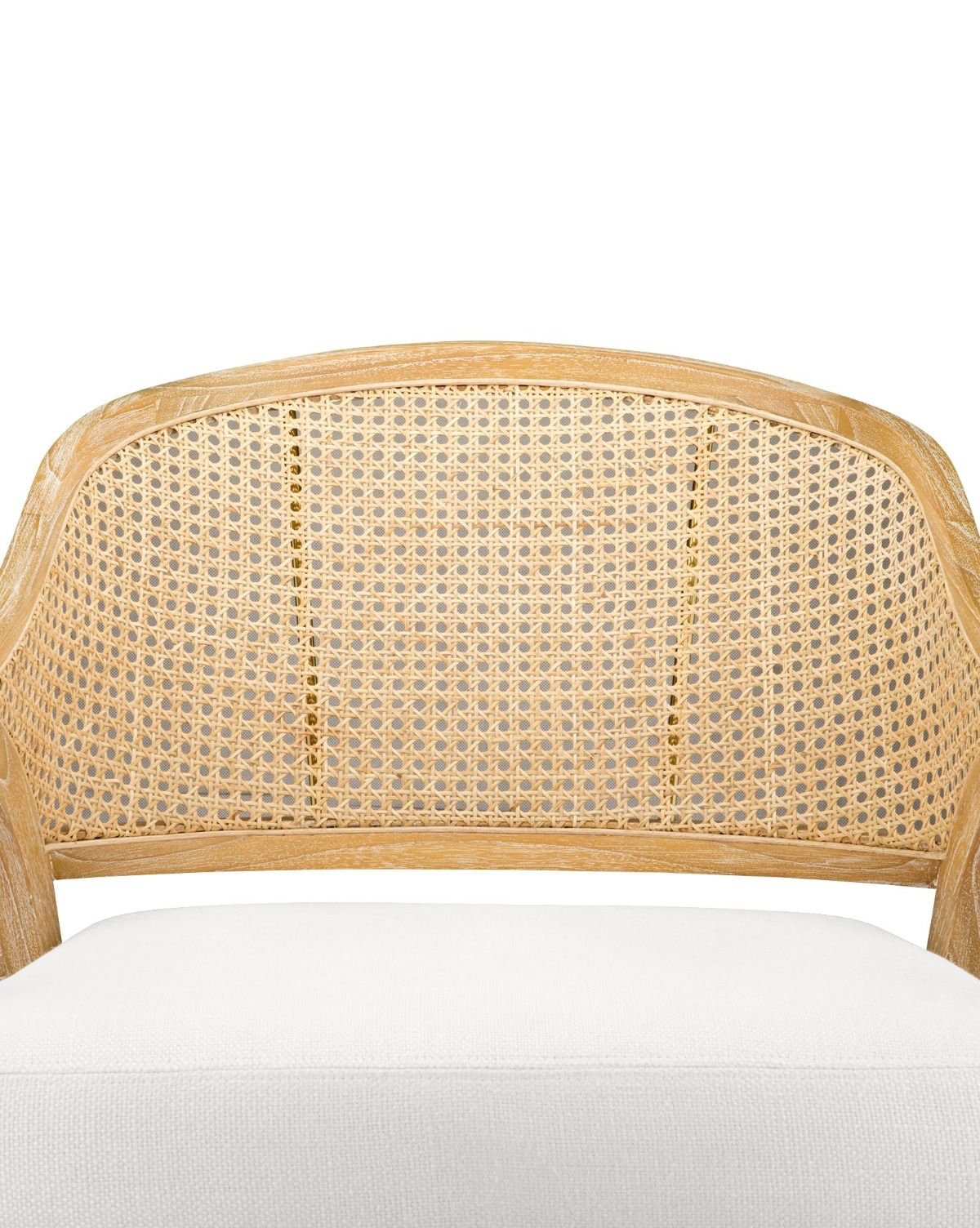 Our Jenson Chair is crafted from a hand-woven rattan back and sustainably-harvested Cape Lilac Mahogany. Elegant and understated hand-cast brass sabots and arm caps finish off this classic design.