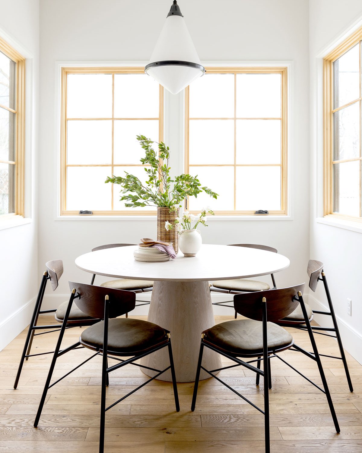 With distinct details, the Jessica Chair offers a new aesthetic to kitchen seating. Made of solid oak, its split seat complements the brass accents of its black steel frame.