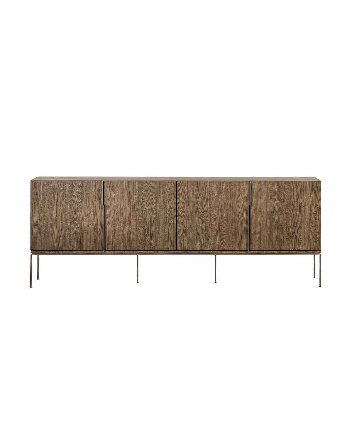 Crafted from traditional oak wood, our Jonathan Sideboard takes on a more modern form with its streamlined silhouette and gunmetal finished iron legs. Matching hardware finishes the piece, drawing the eye while adding functionality to the minimalist design.