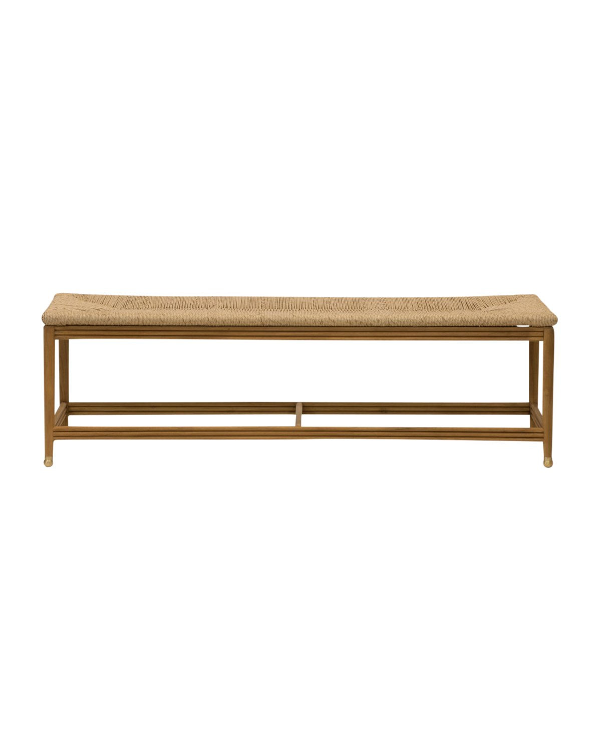It’s all about the details with the contemporary reimagination of our Kelmscott Rush Bench. With a hand-carved teak frame, this bench brings a natural, organic feel placed at the end of your bed or in your mudroom. Topped with a synthetic twisted hyacinth seat and finished with brass capped feet, this piece can be used both indoors or out as a timeless staple.