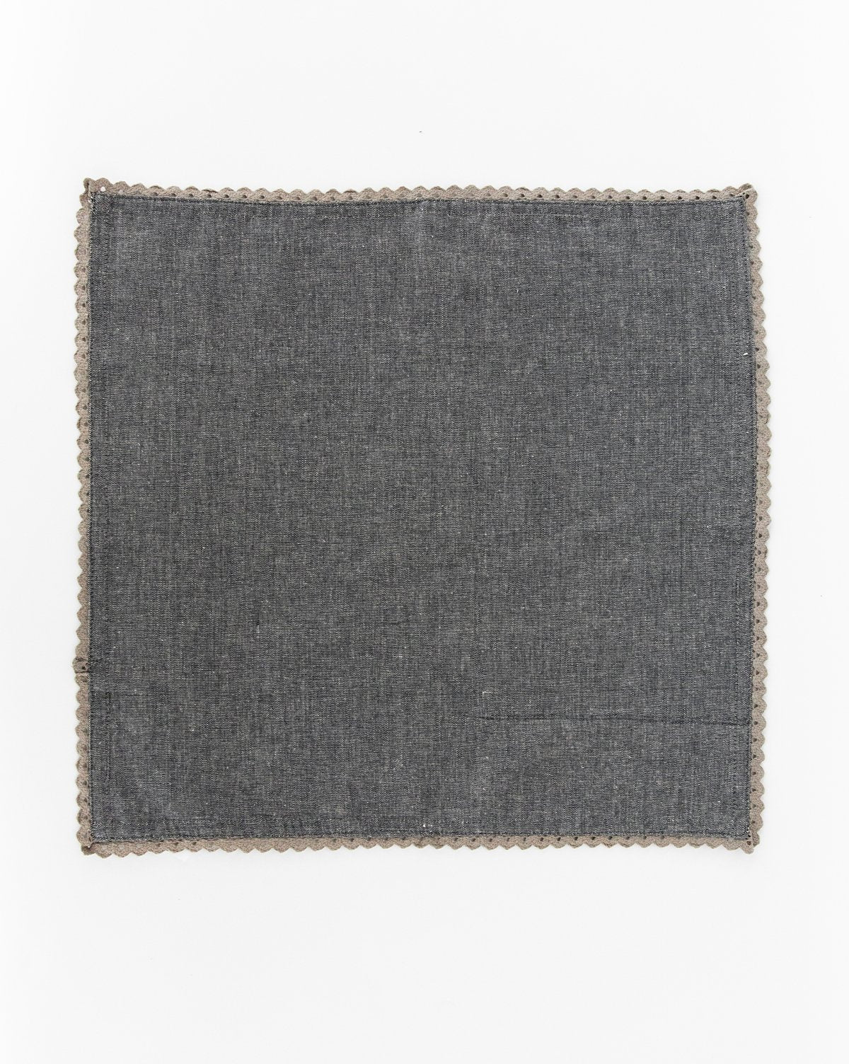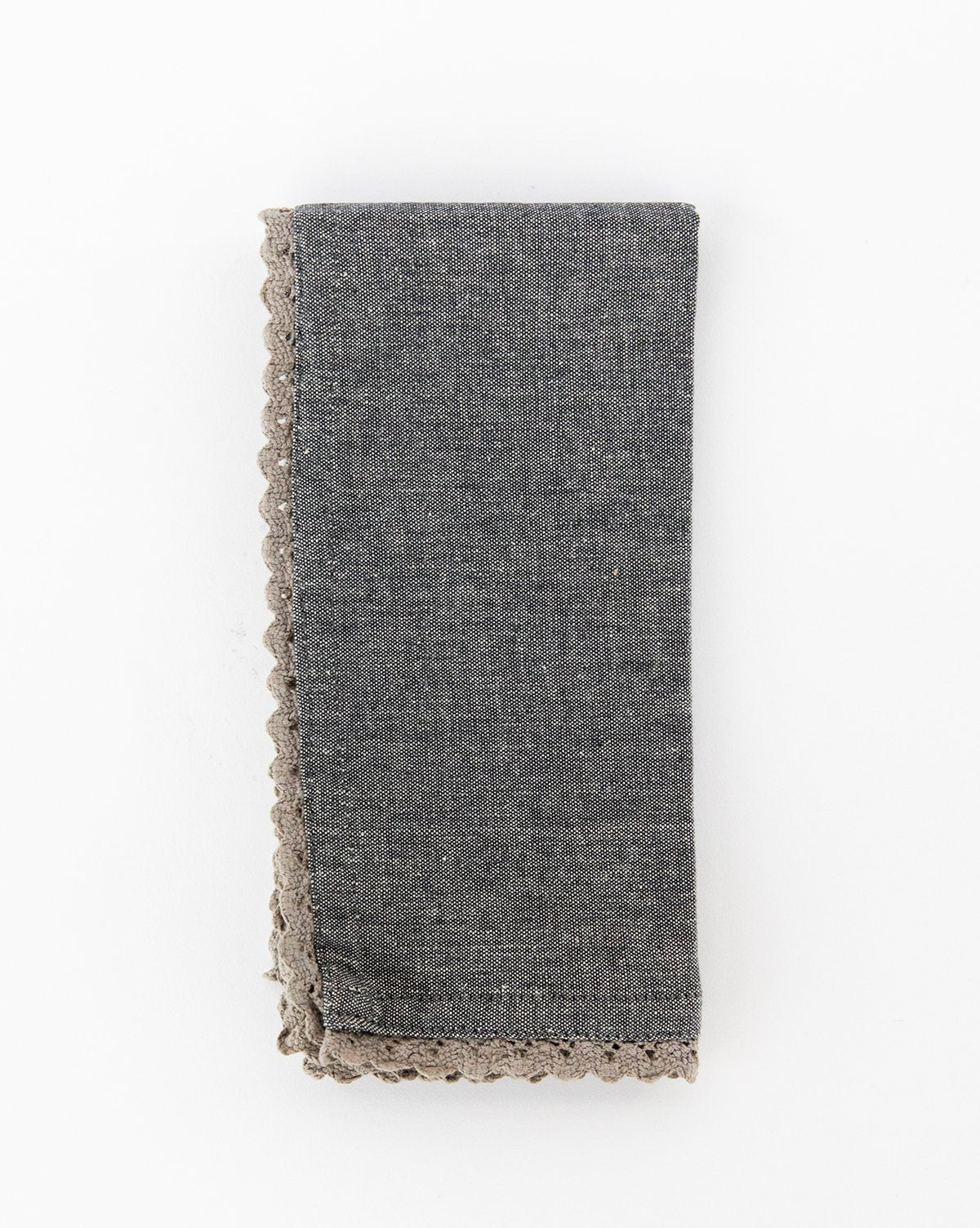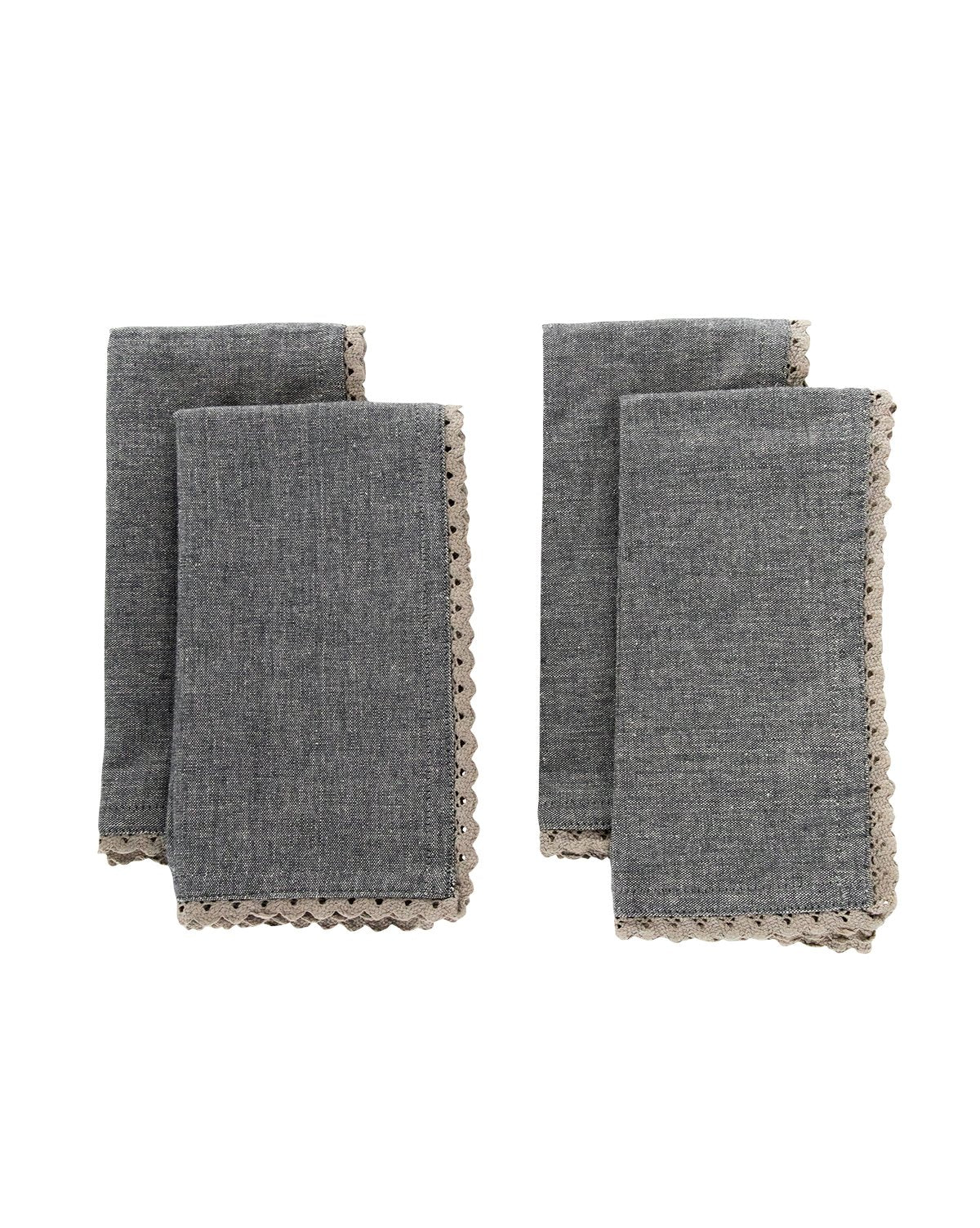 With a charcoal hue, and tonal lace-detailed edge, this set of napkins makes entertaining or everyday dining a breeze. Let its neutral coloring add an extra layer of dimension to your tablescape, whether you’re dining indoors or out.