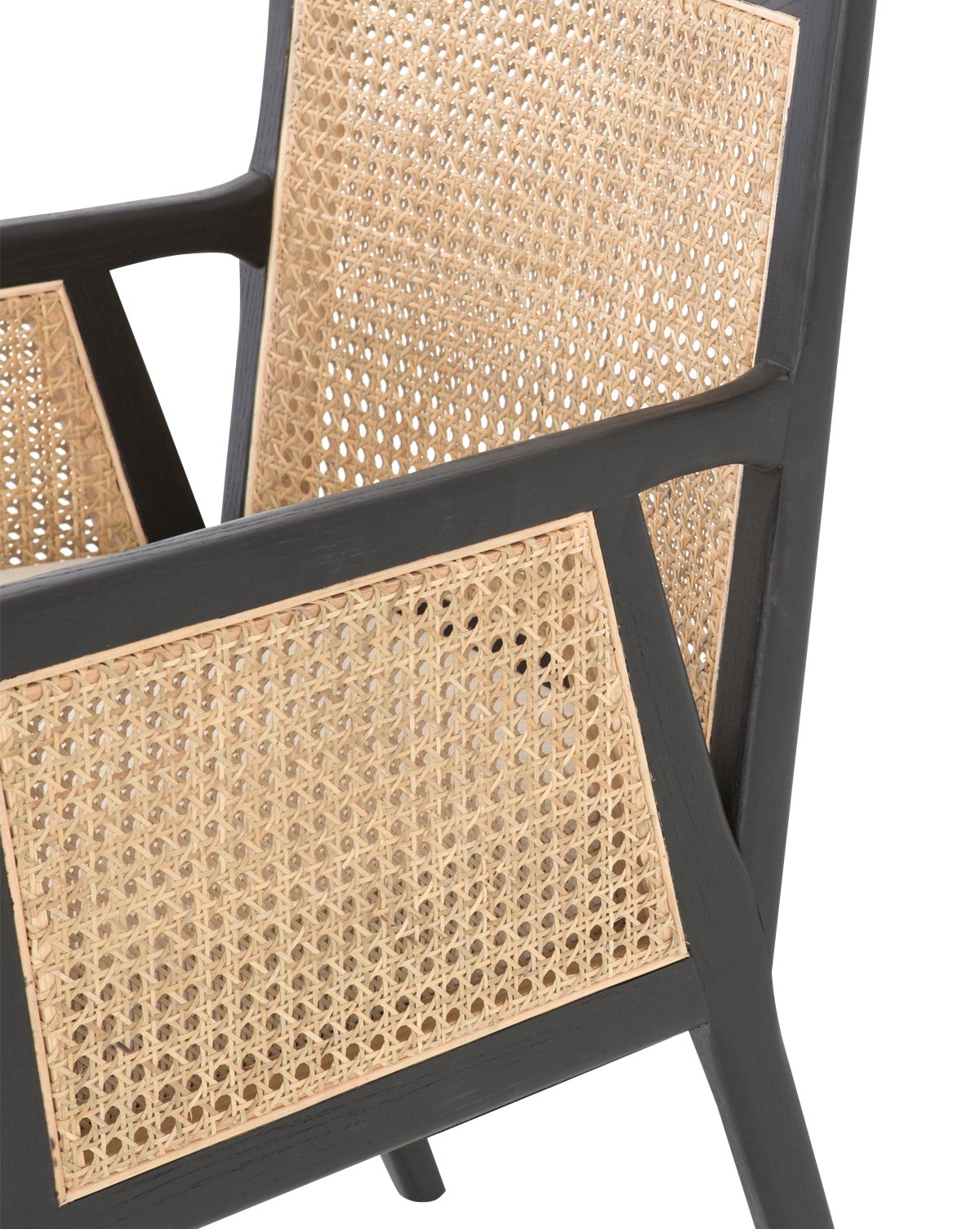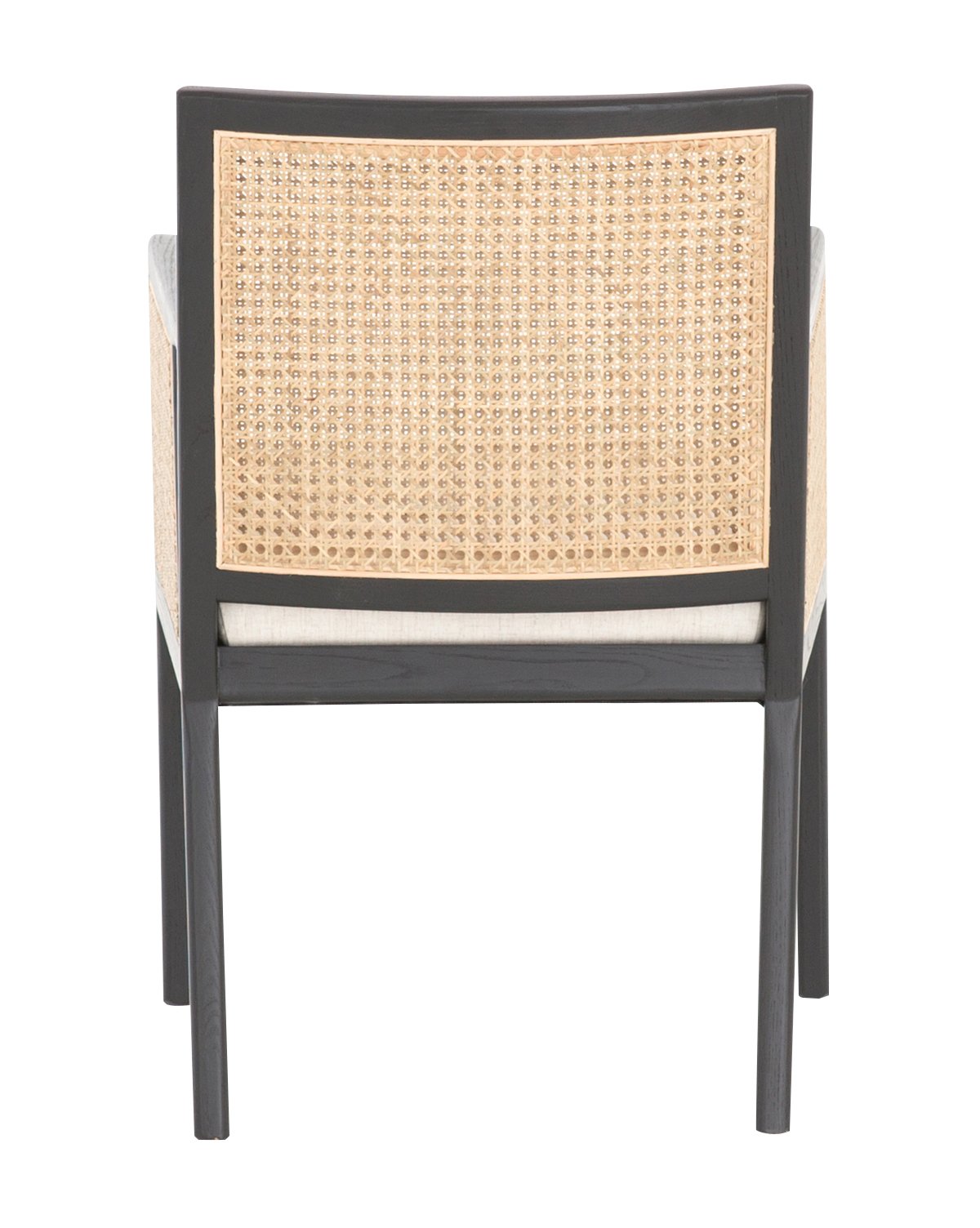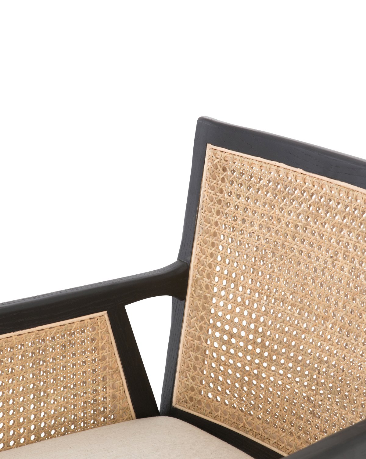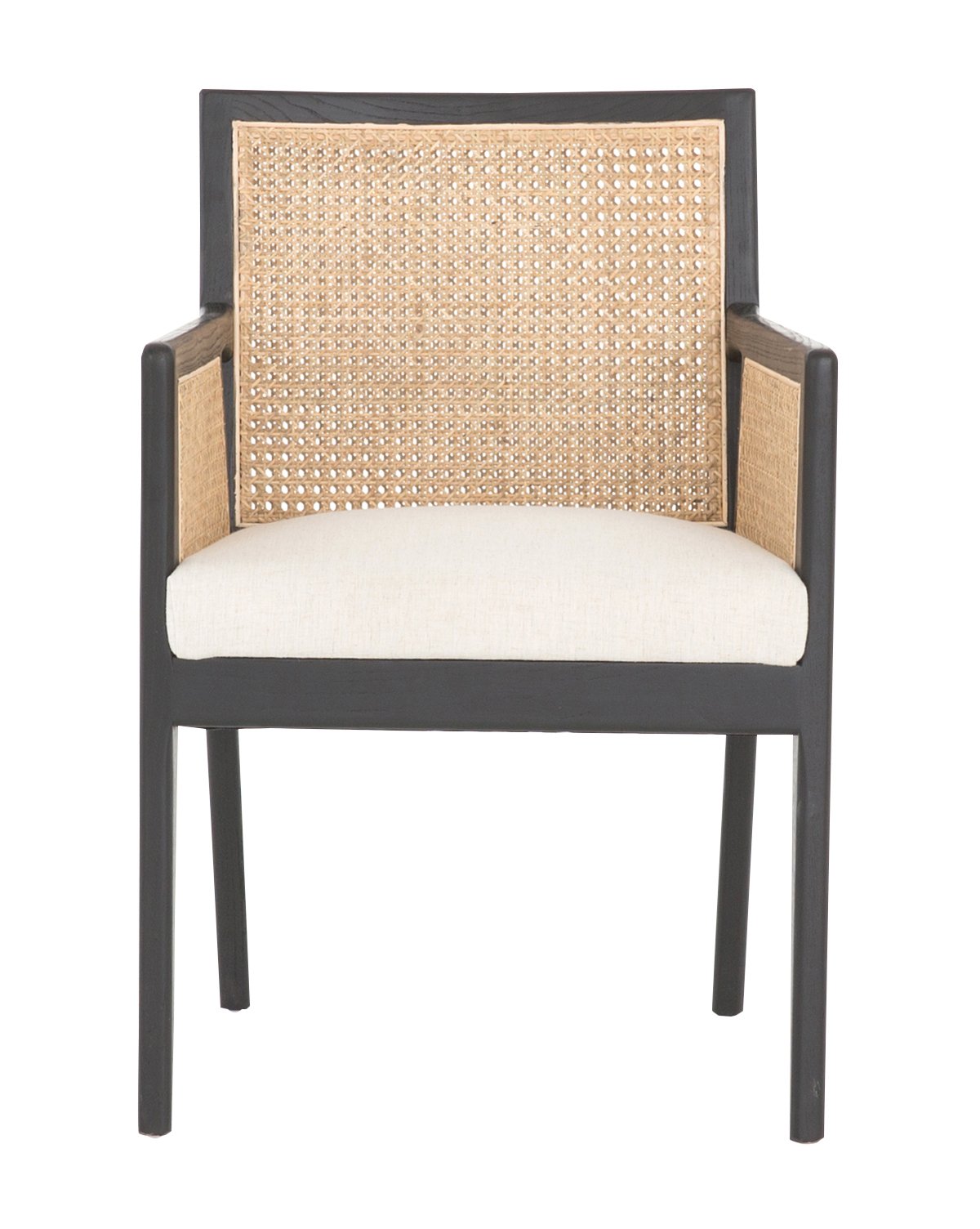 Drawing on a mix of materials, the Landon Arm Chair breathes new life to traditional seating.  A nettlewood frame with inlay of natural cane and a neutral linen-blend cushion, create contrast in texture and color.