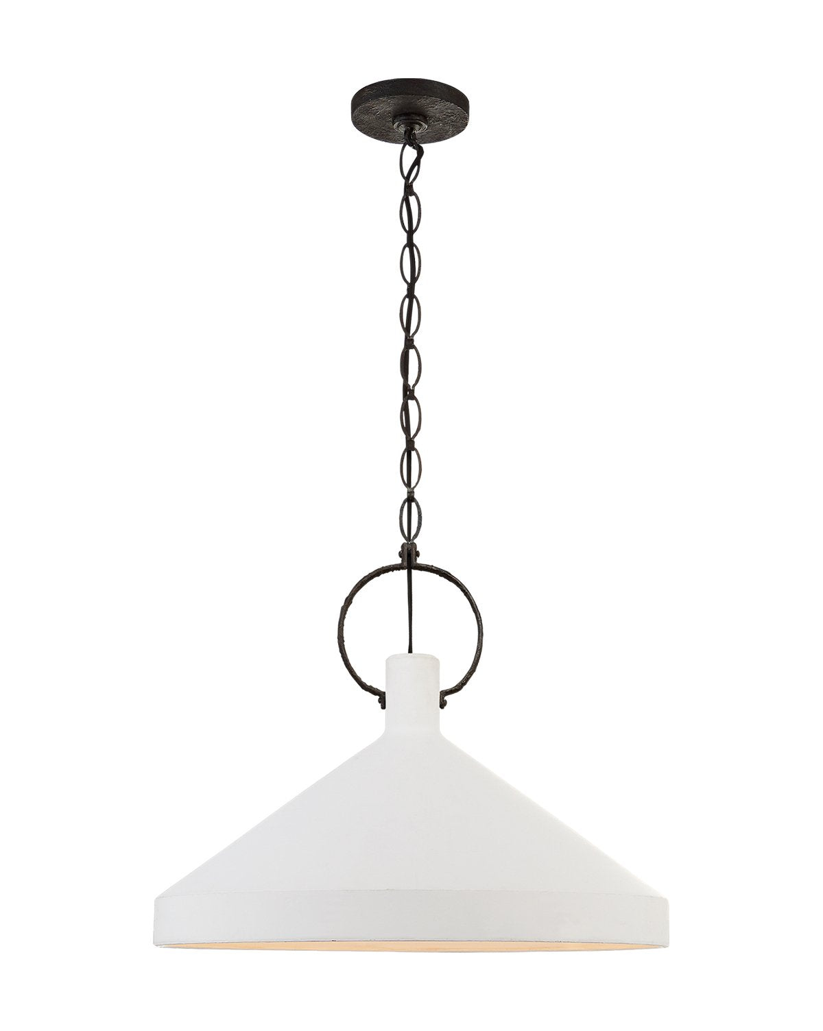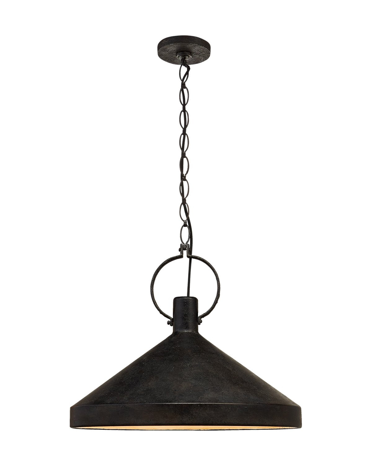 We were immediately attracted to the Limoges Pendant for its bold simplicity. Its strong conical shade is held by a large circular clasp that bring balance and subtle interplay with shaping into its design.