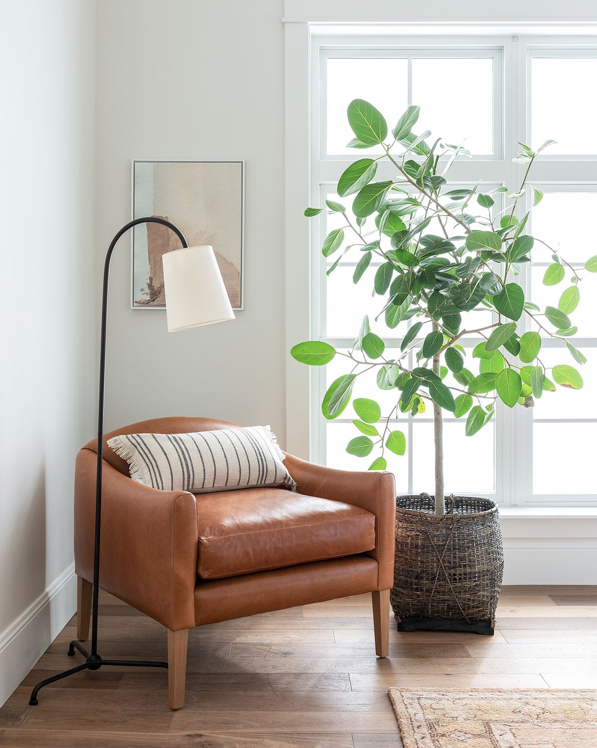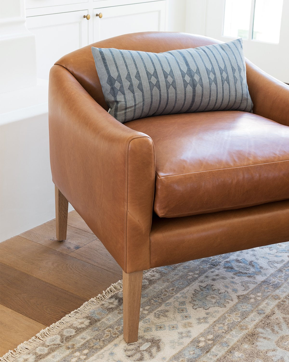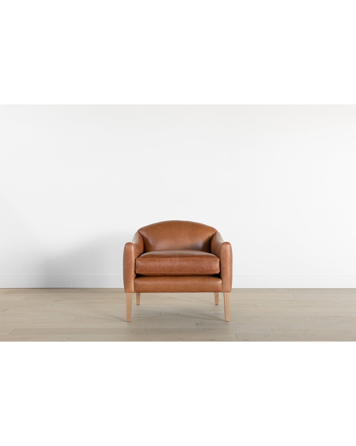 Smooth curves and handsome leather create a piece that shows off your refined taste. Zero in on your style with your choice of two rich leather tones in our made-to-order Linder Leather Arm Chair. Each cut of the leather is dyed through an aniline process to retain the natural integrity of the hide. Aging beautifully over time, this supple hand-stitched leather encases full down wrapped cushions, masterfully mixing comfort with modern style. Slightly tapered legs crafted from kiln-dried oak for durability add another level of style to its sleek design.