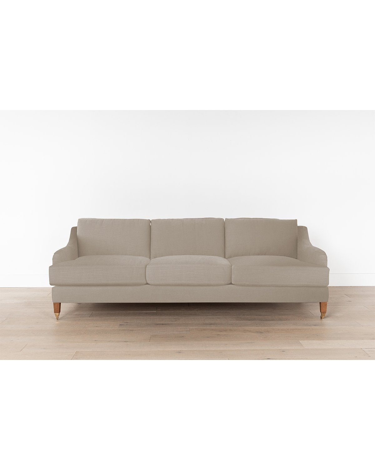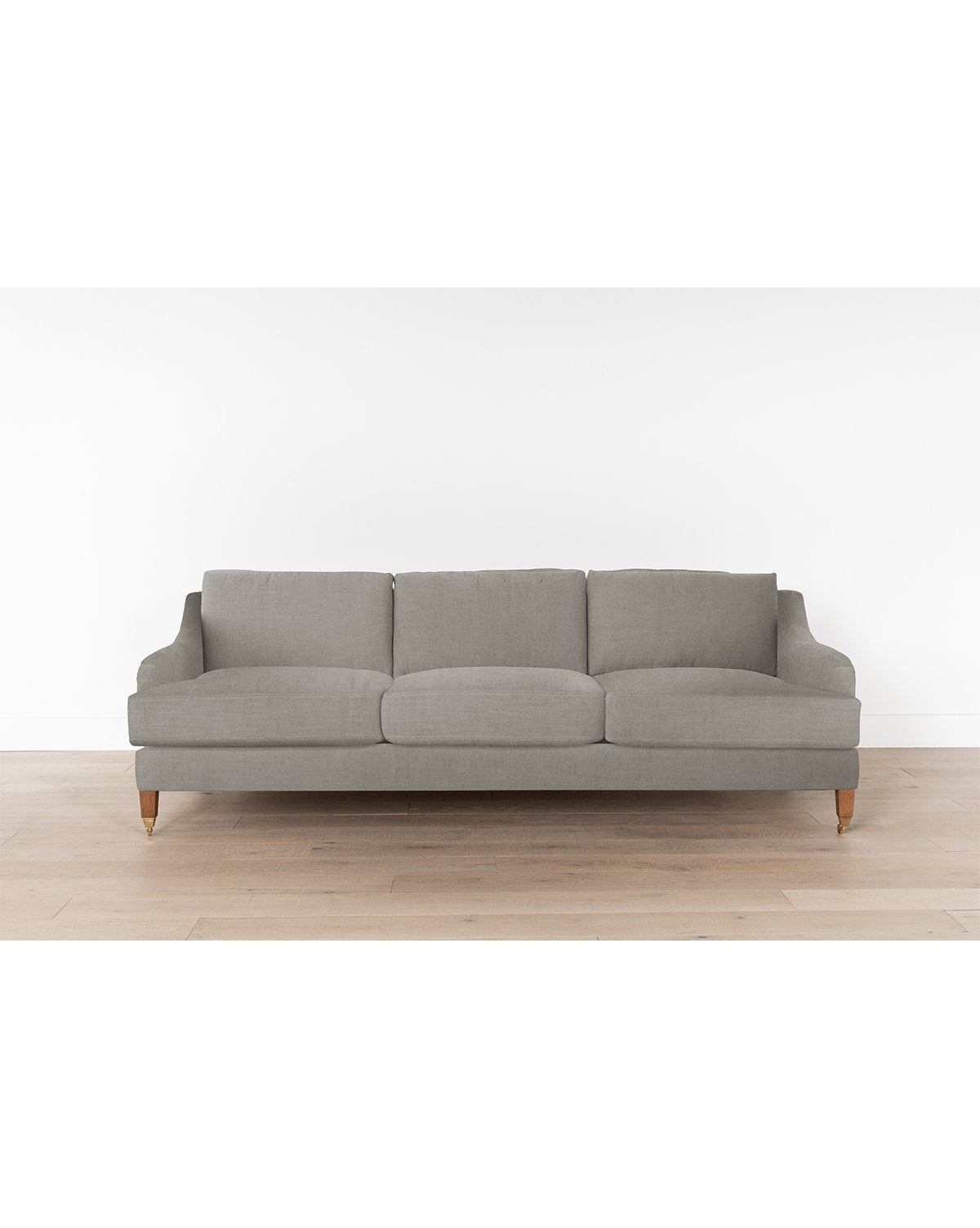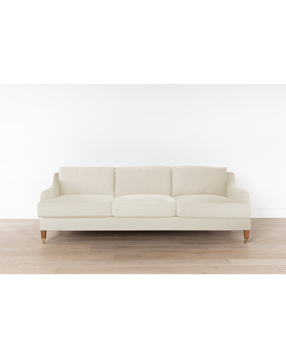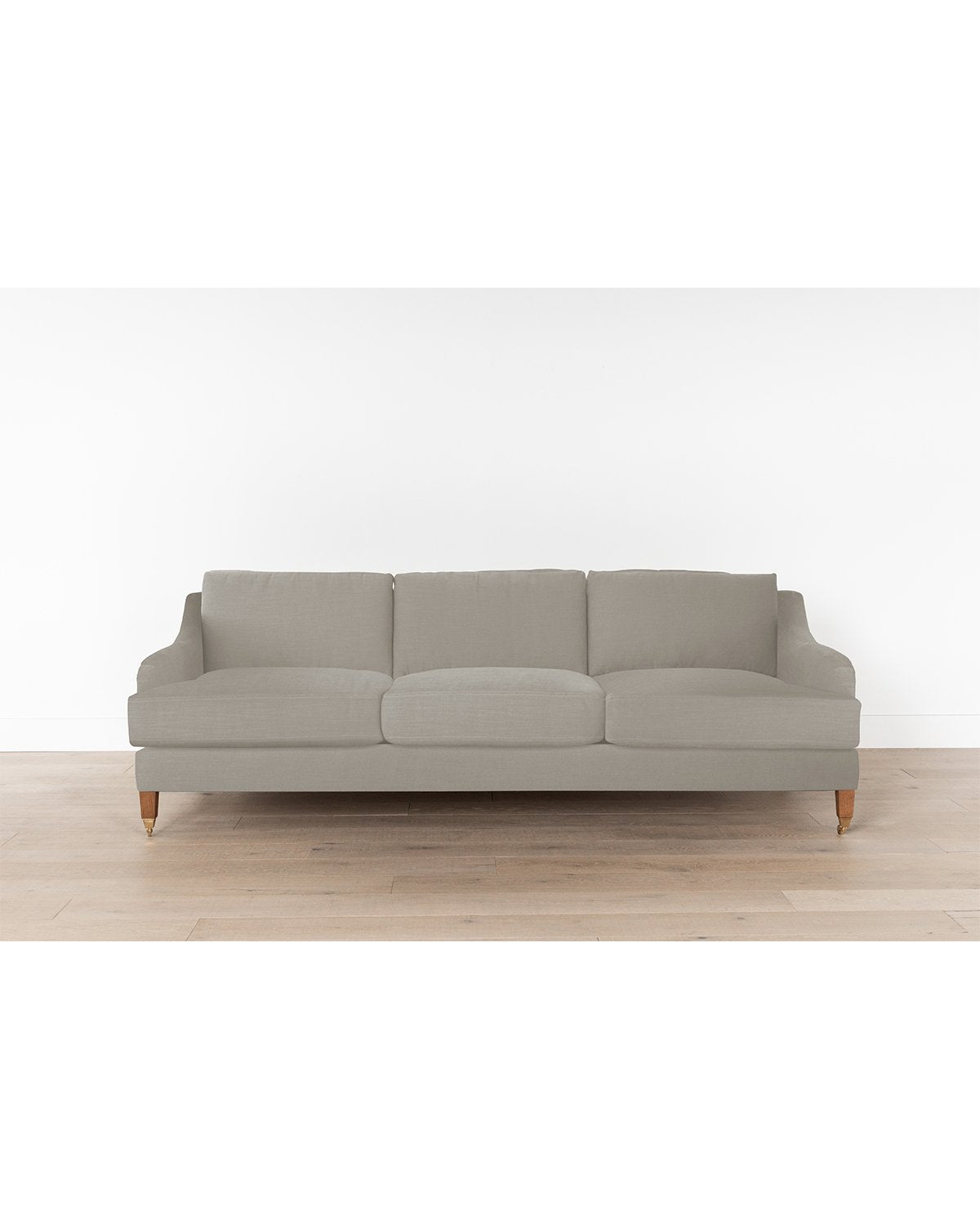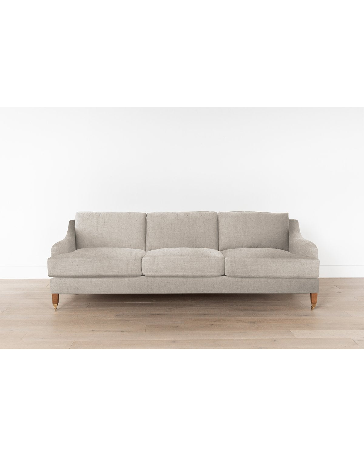 Our Lucille English Roll Arm Sofa is a modern approach to a traditional design. Crafted with luxurious comfort in mind, its classic format features down wrapped cushions for a perfectly stuffed look and feel. A kiln-dried solid oak frame adds durability to the design, as four tapered legs give this sofa the ability to move around with ease. Completely customizable in a wide array of fabrics –– make the Lucille sofa your own with either a comfortably soft linen, or high performance crypton.