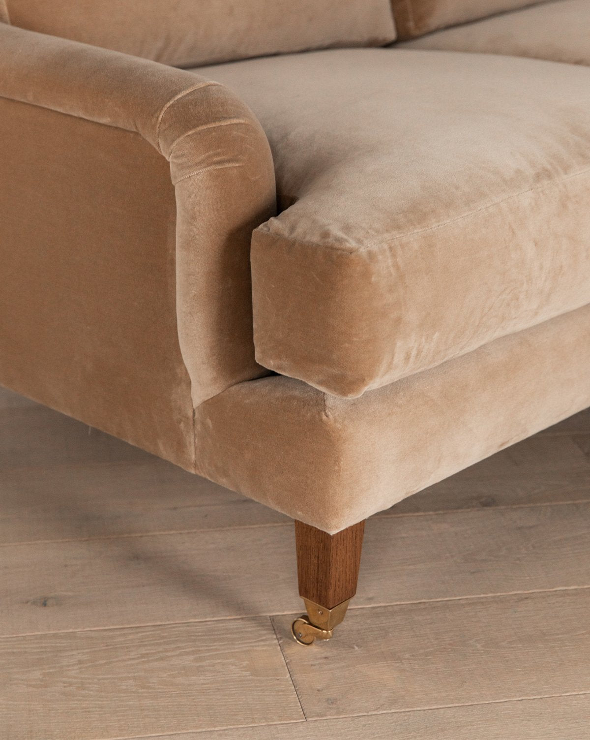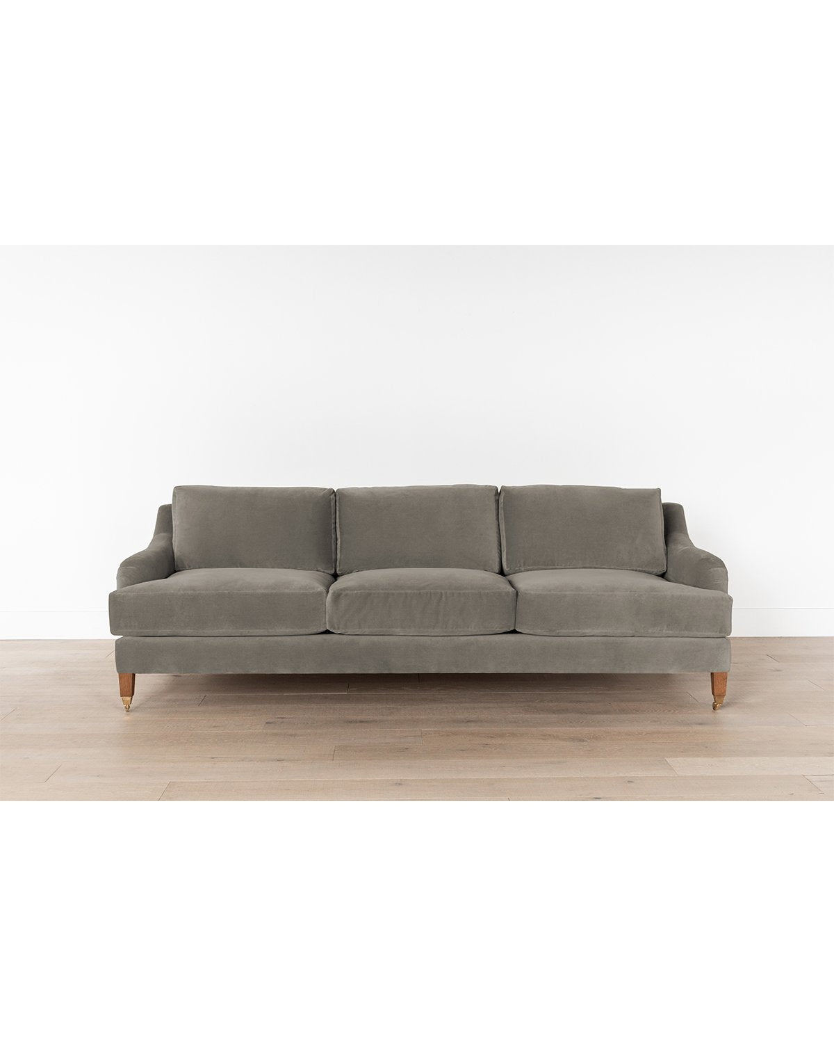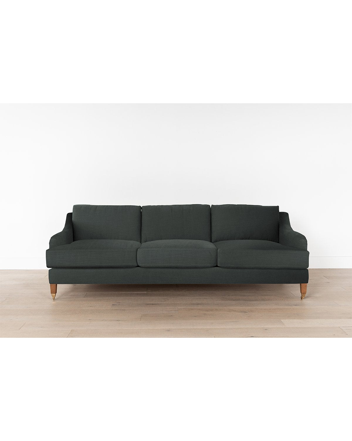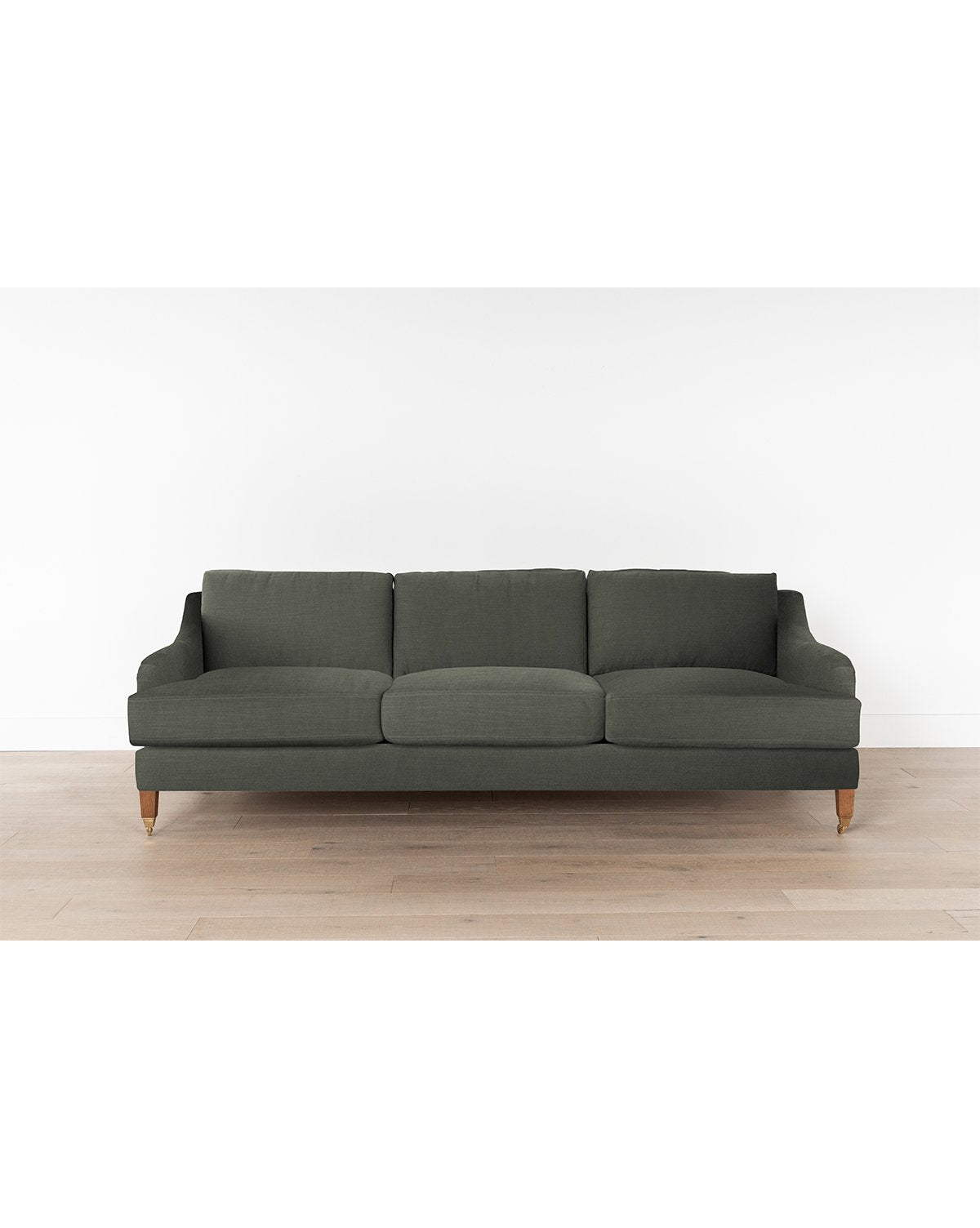 Our Lucille English Roll Arm Sofa is a modern approach to a traditional design. Crafted with luxurious comfort in mind, its classic format features down wrapped cushions for a perfectly stuffed look and feel. A kiln-dried solid oak frame adds durability to the design, as four tapered legs give this sofa the ability to move around with ease. Completely customizable in a wide array of fabrics –– make the Lucille sofa your own with either a comfortably soft linen, or high performance crypton.