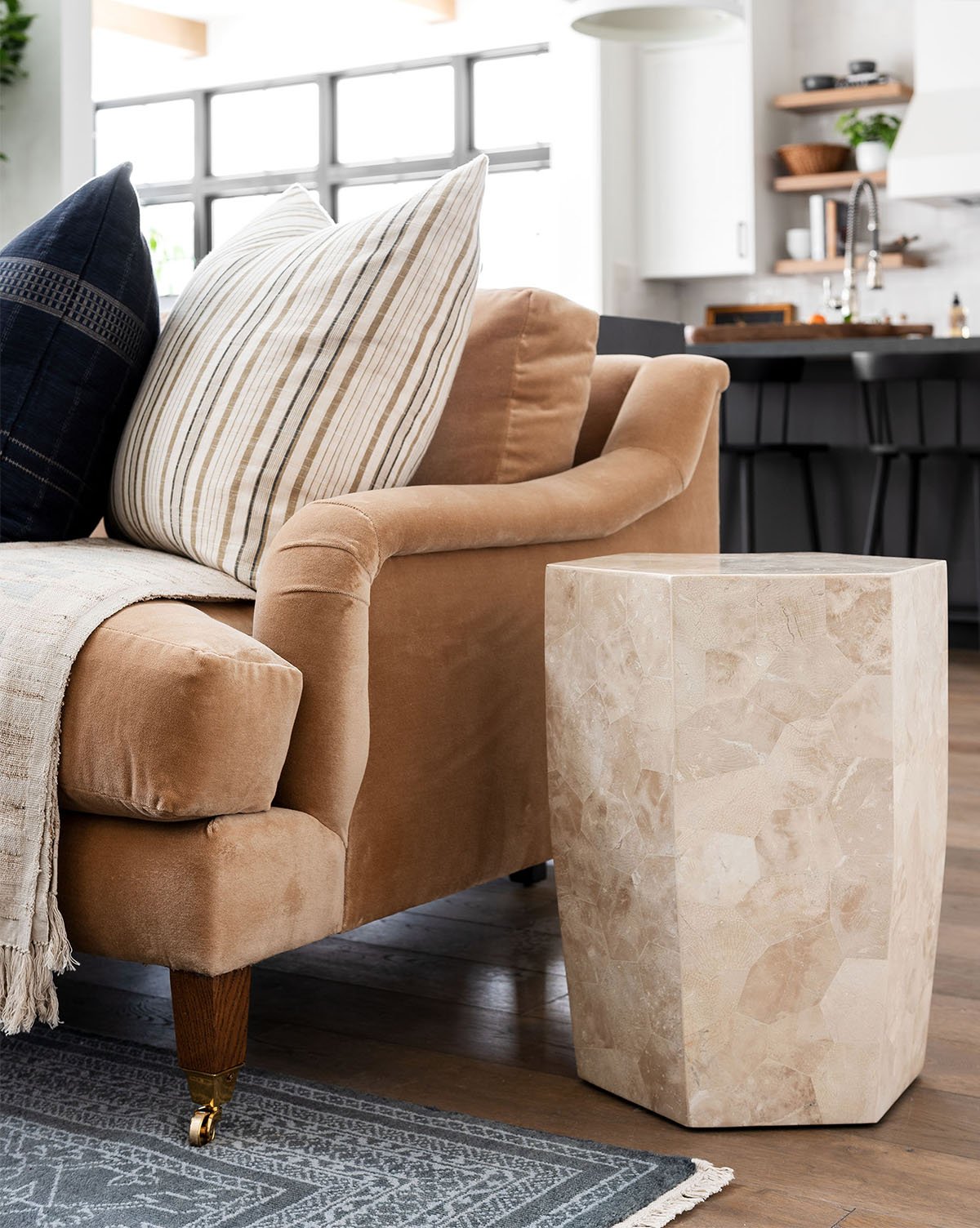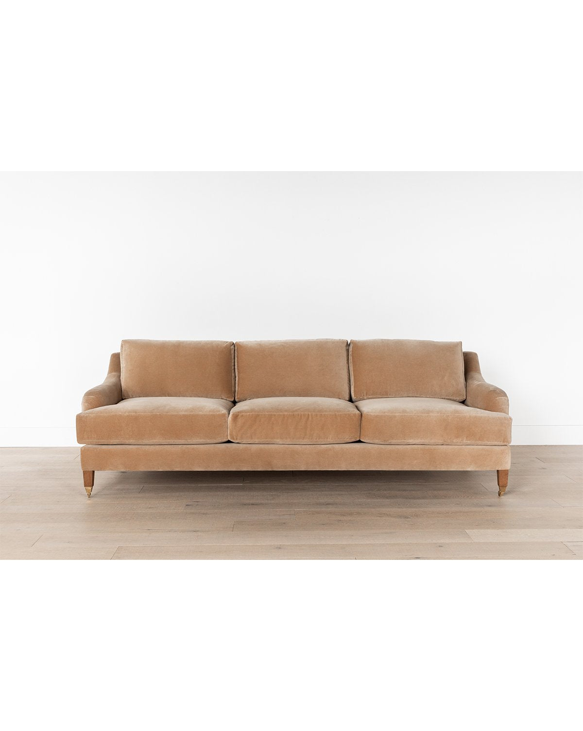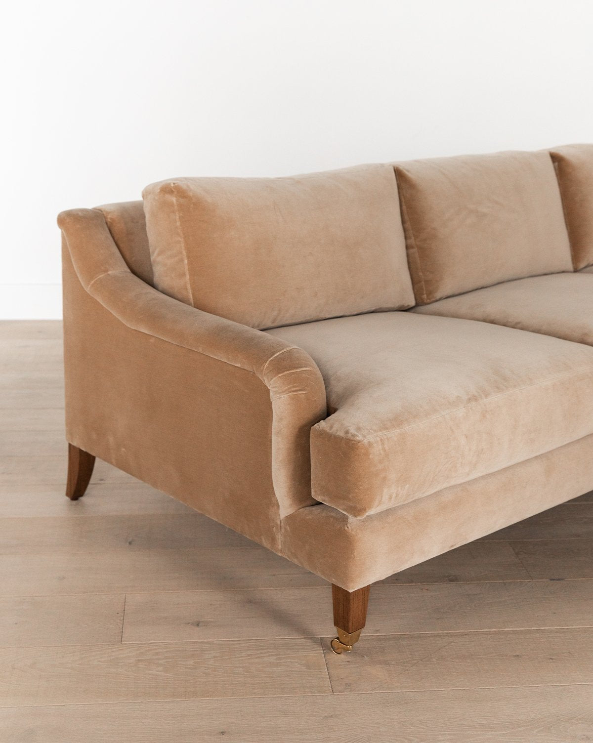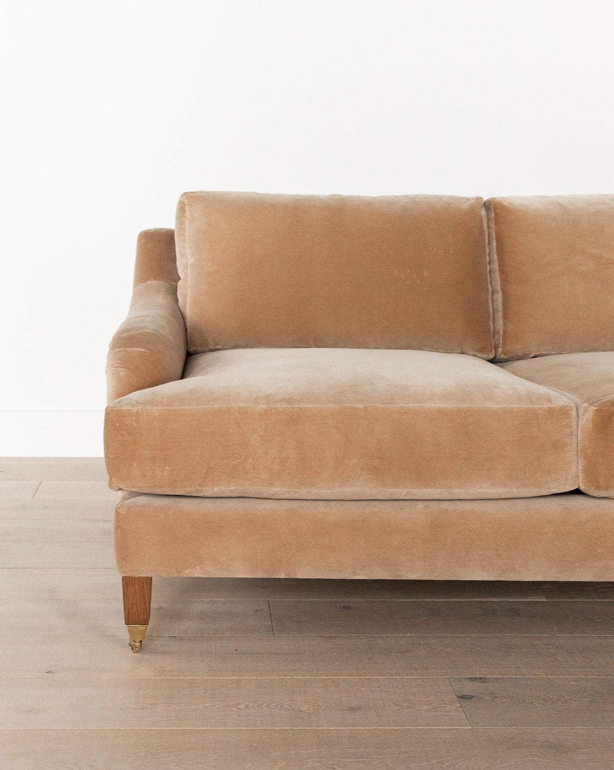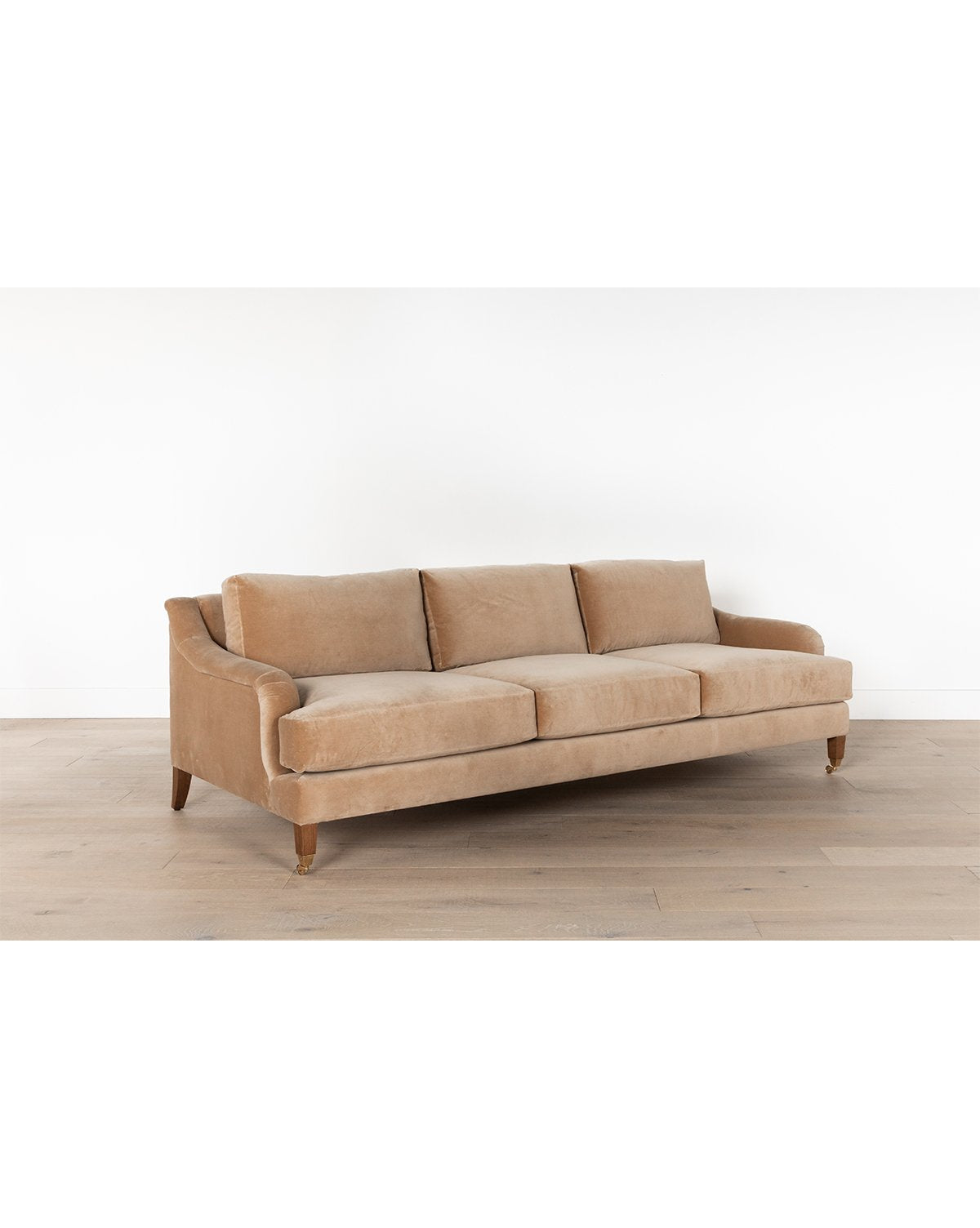 Our Lucille English Roll Arm Sofa is a modern approach to a traditional design. Crafted with luxurious comfort in mind, its classic format features down wrapped cushions for a perfectly stuffed look and feel. A kiln-dried solid oak frame adds durability to the design, as four tapered legs give this sofa the ability to move around with ease. Completely customizable in a wide array of fabrics –– make the Lucille sofa your own with either a comfortably soft linen, or high performance crypton.