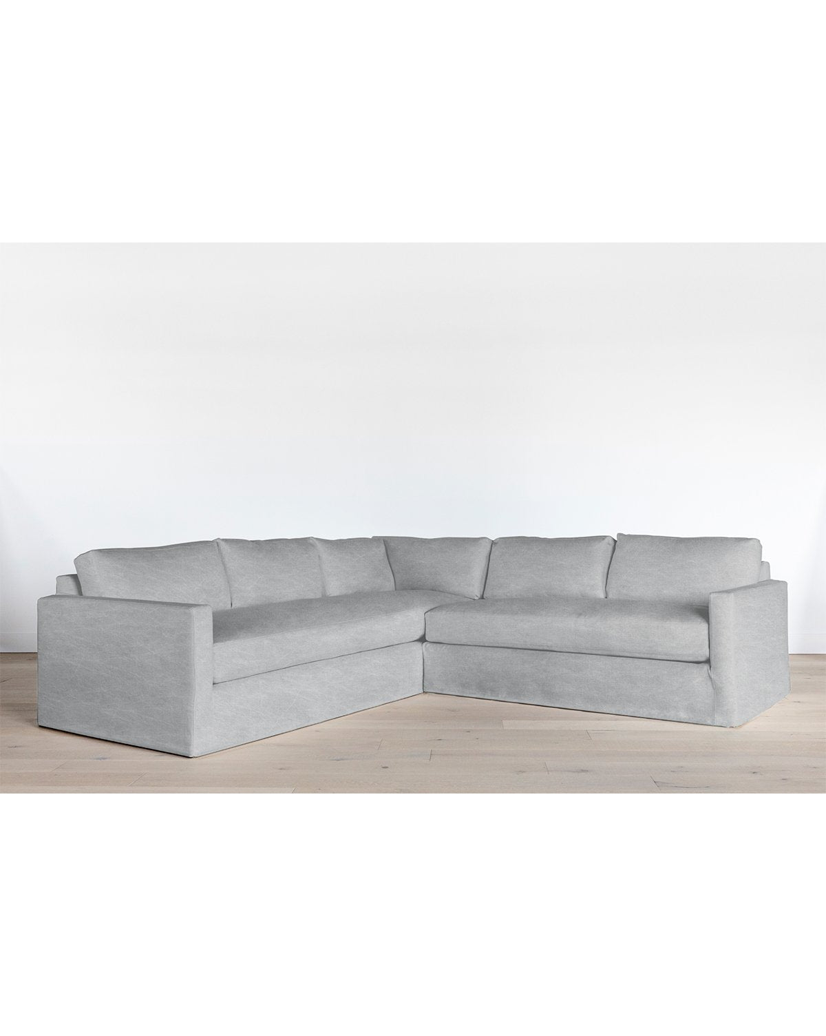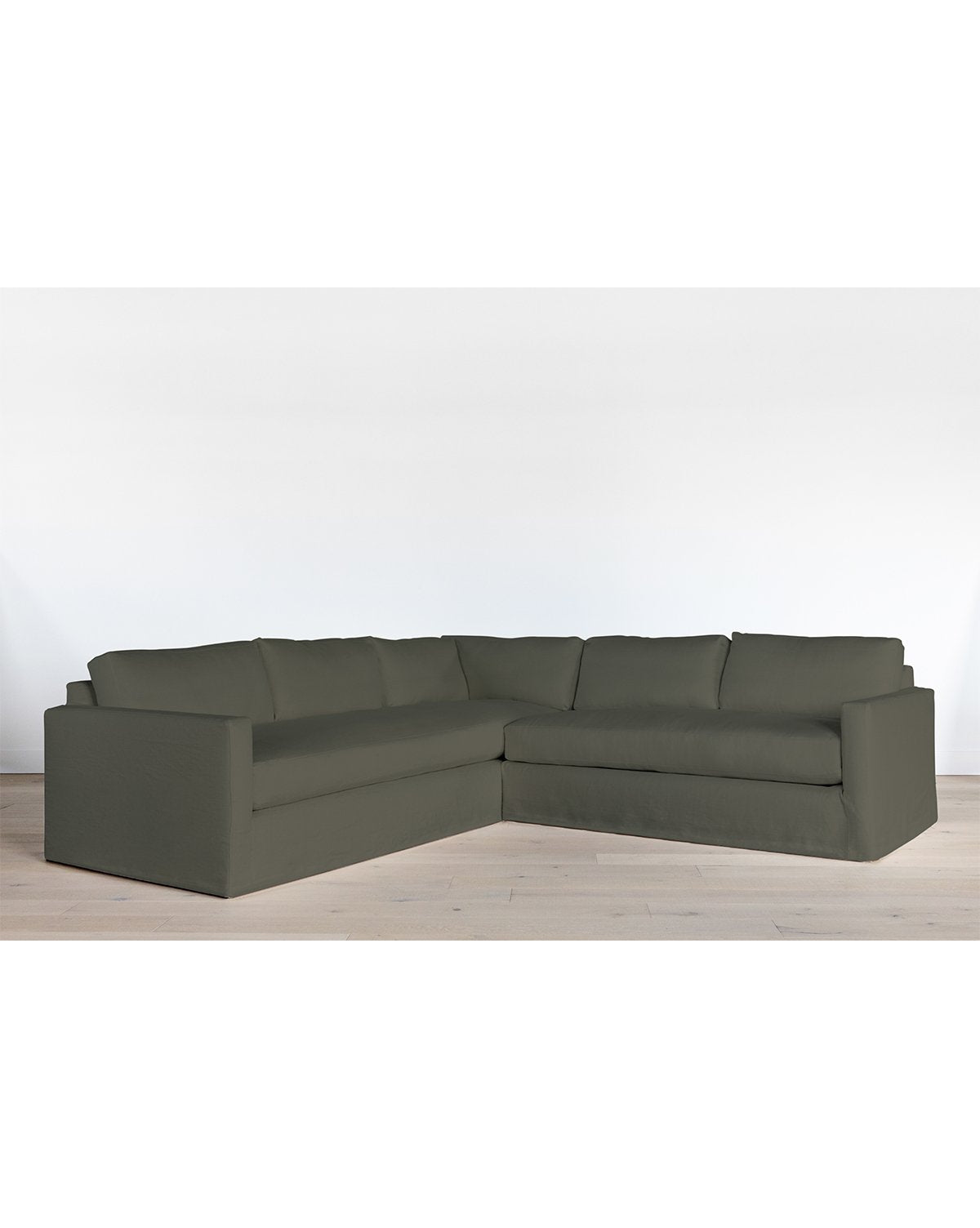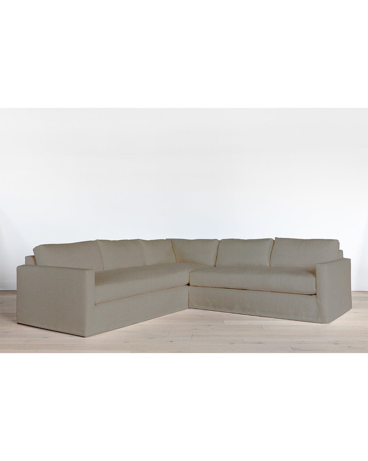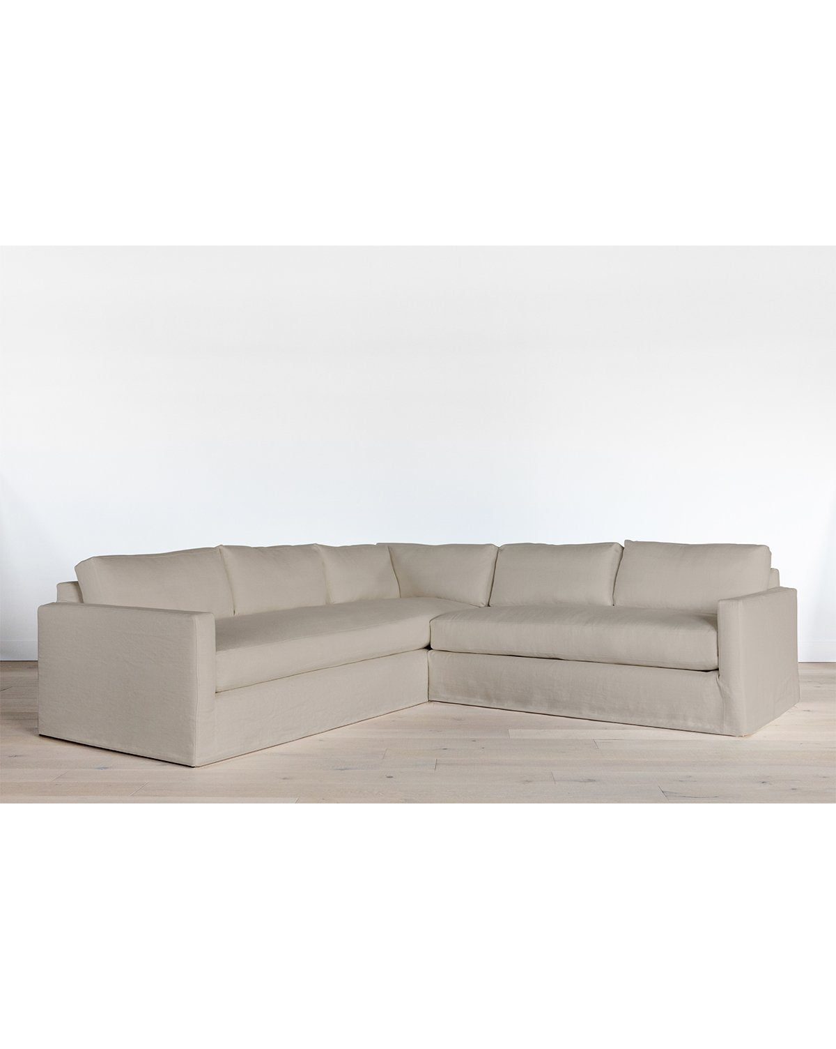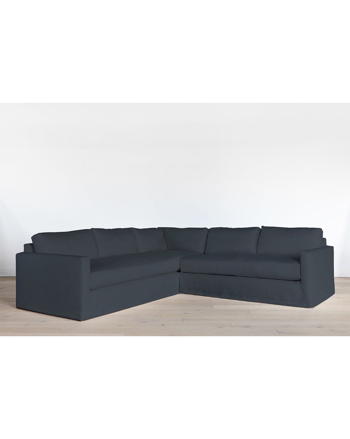 Traditional and classic, this streamlined, slipcovered sofa is framed from solid oak, proven by a kiln-dried process for quality and durability. Perfect for placing in tv rooms or a more casual family gathering area, our Macy Sectional is completely customizable with a wide shade range of comfortable linen fabrics. Down wrapped cushions make this sectional luxuriously soft, as its deep set design brings ultimate comfort to your space.