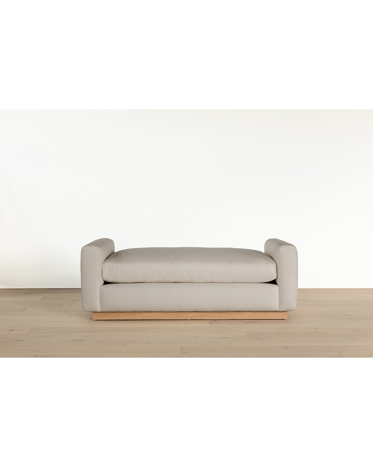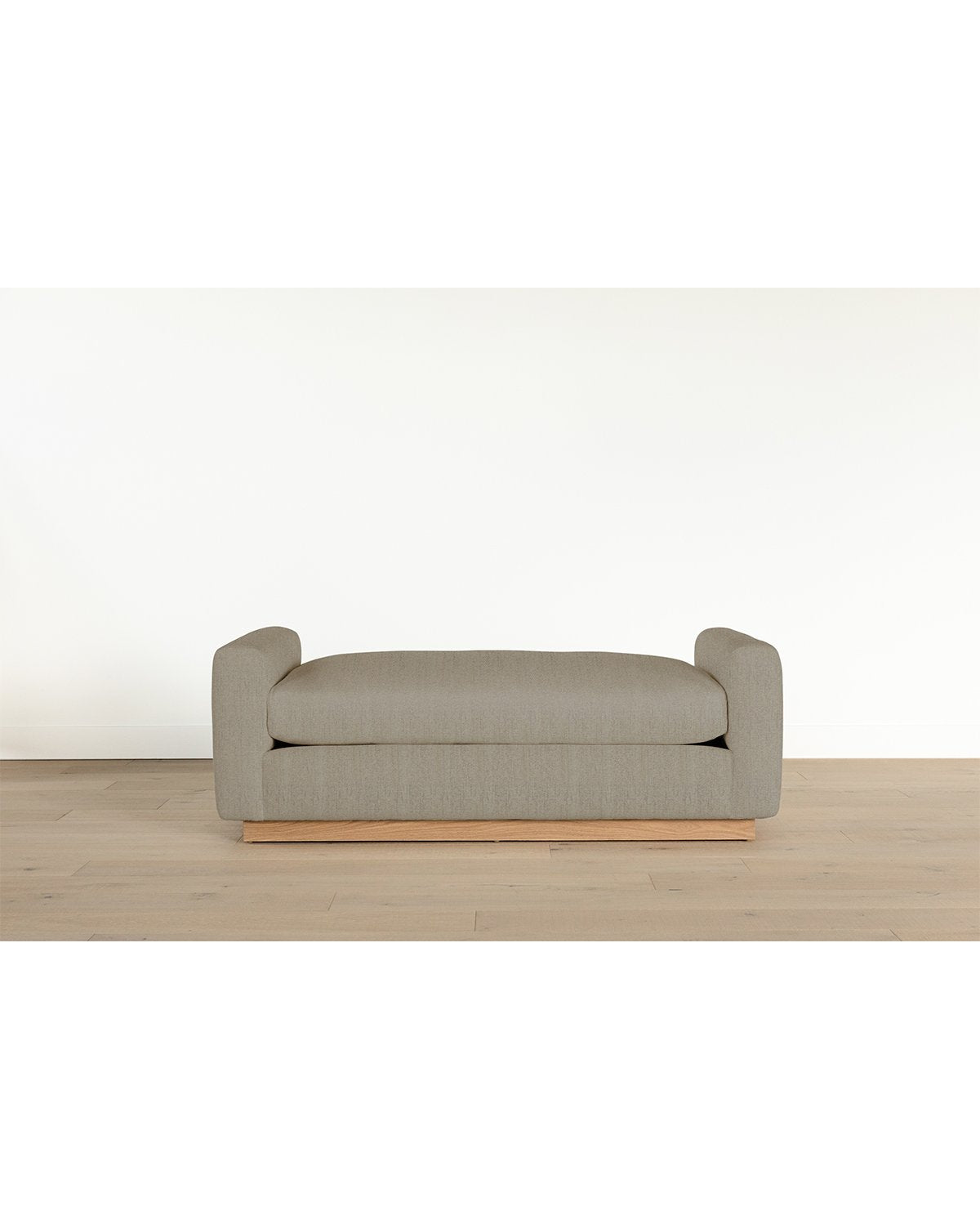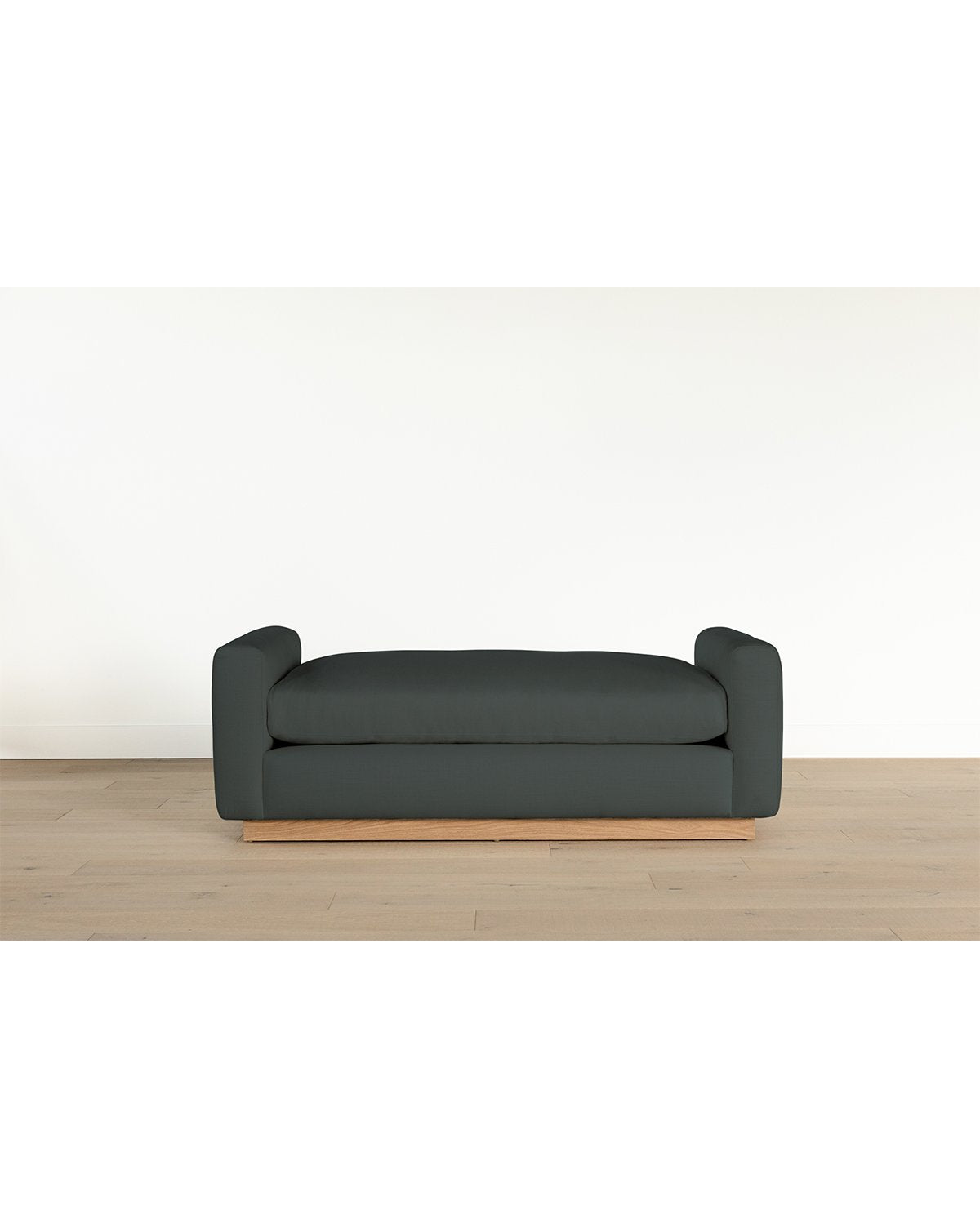 A streamlined update to a traditional form, our Mansfield Bench features a full, down-wrapped bench cushion for ultimate comfort. Customizable in an array of fabrics from linen to velvet, this bench was designed with your home and individual style in mind. Rounded arm details add a soft feel to the design, while a kiln-dried, framed oak base provides durability for years to come.