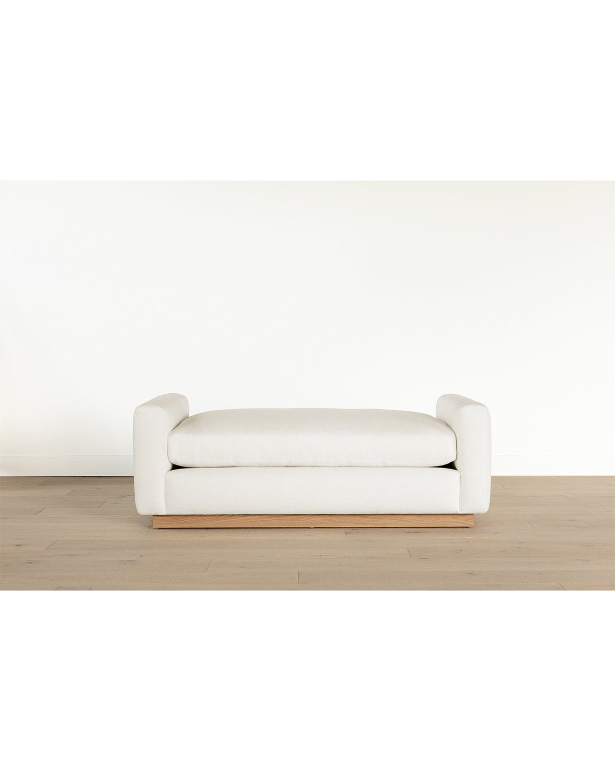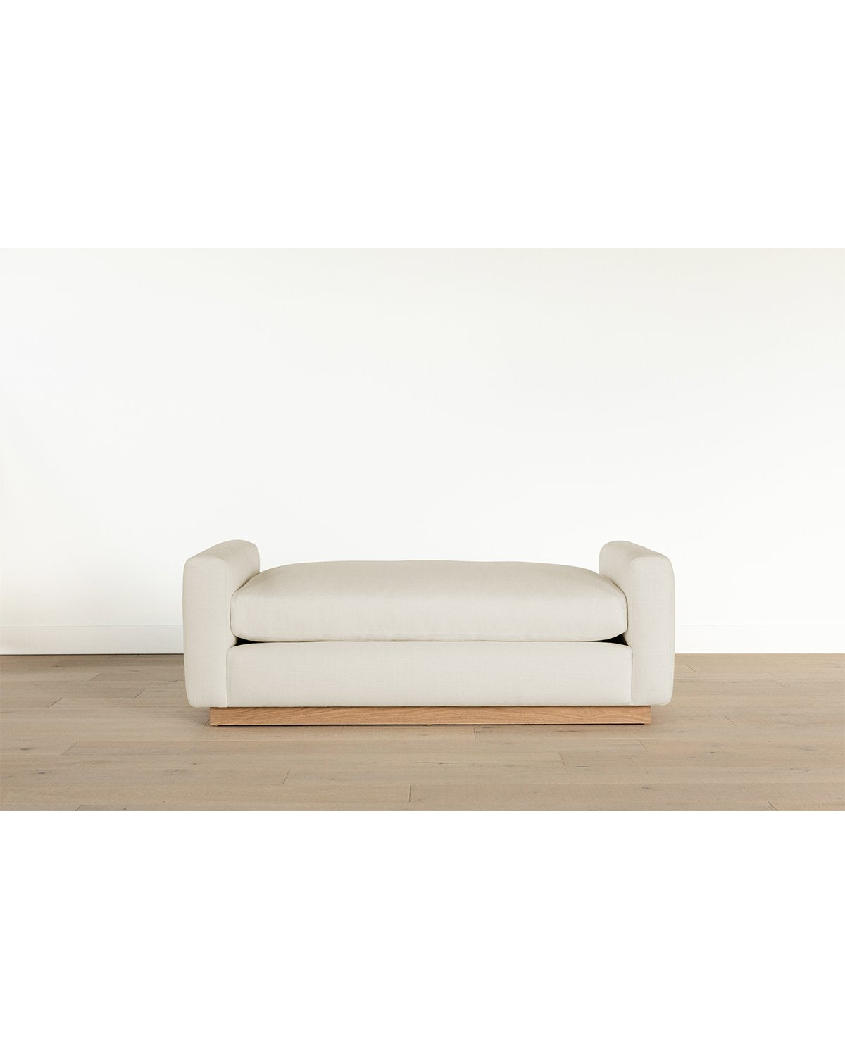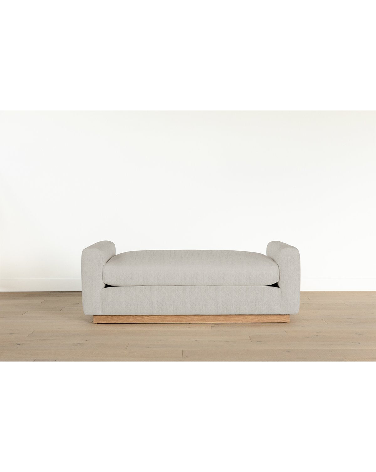 A streamlined update to a traditional form, our Mansfield Bench features a full, down-wrapped bench cushion for ultimate comfort. Customizable in an array of fabrics from linen to velvet, this bench was designed with your home and individual style in mind. Rounded arm details add a soft feel to the design, while a kiln-dried, framed oak base provides durability for years to come.