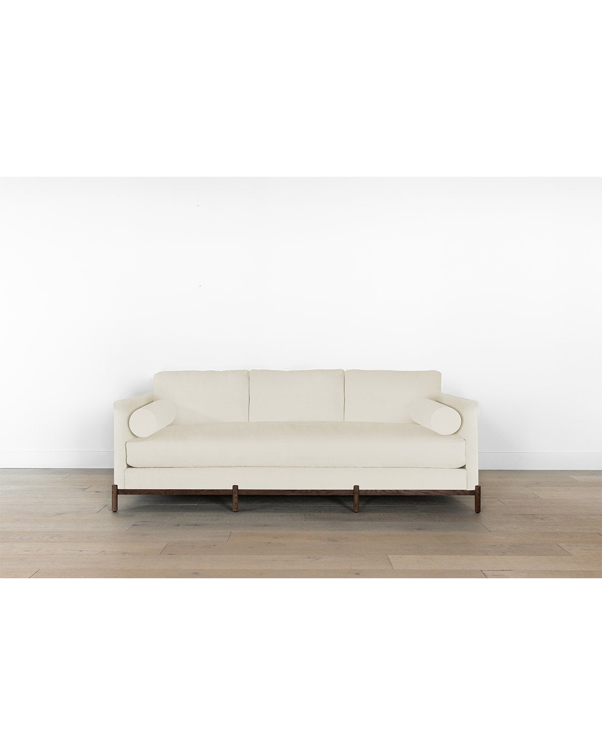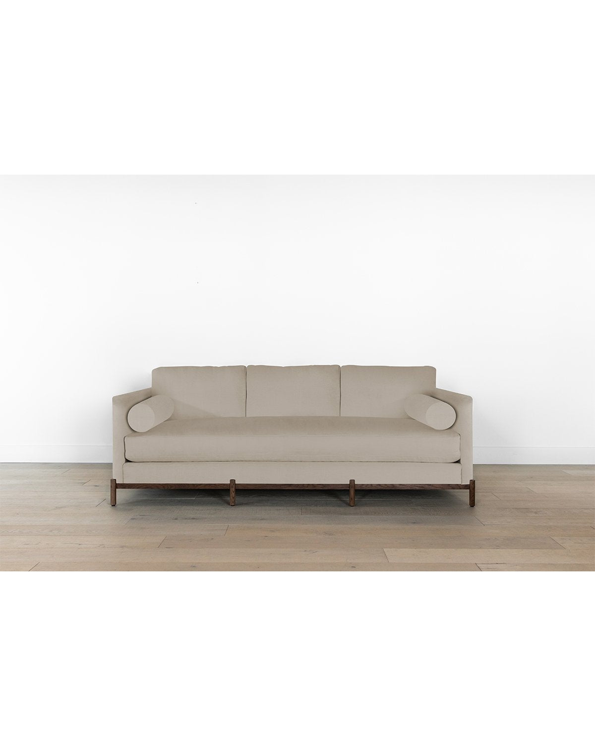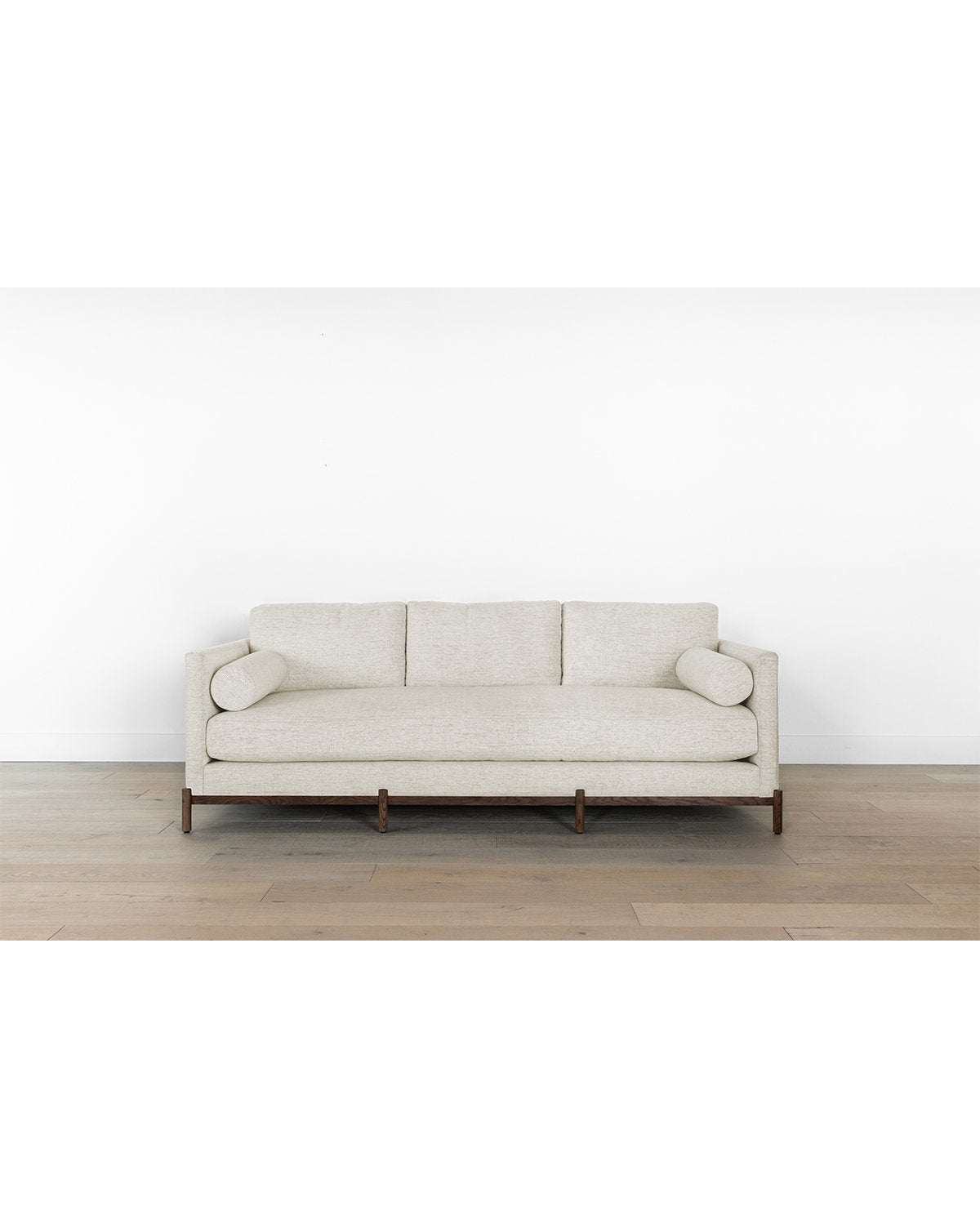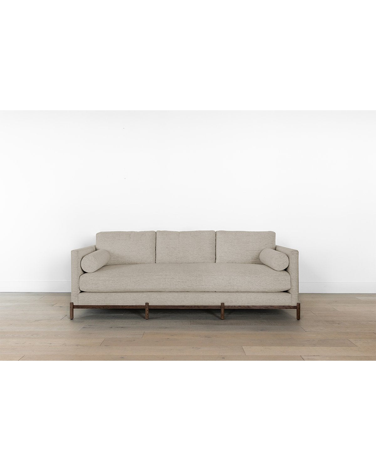 Streamlined and modern, our Morrison Wood Base Sofa was designed with chic comfort in mind. Its single seat cushion adds to both the form and function of the design, while its down wrapped fill is the epitome of luxurious comfort. Sitting atop a durable, minimalist styled base crafted from kiln-dried white oak, this elevated sofa enhances your space with sophisticated style. Completely customizable in a wide array of fabrics –– make the Morrison sofa your own with either a comfortably soft linen, or high performance crypton.
